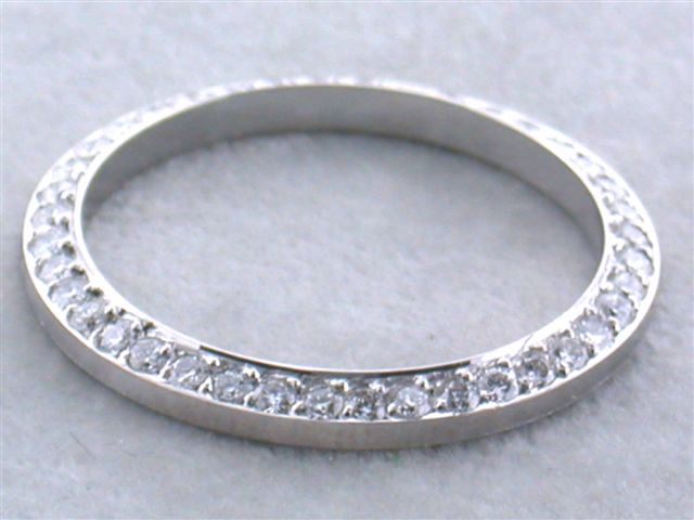 18k White Gold Bezel w/ Diamonds - 0.81 carats in G color and VS clarity; 1 inch in Diameter and weighs 3.2 grams