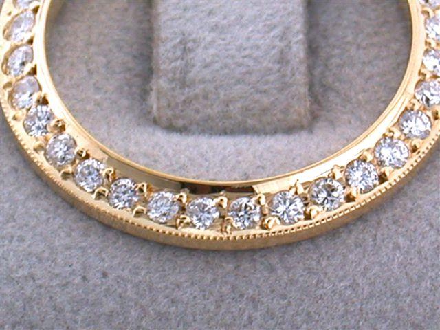 18k Yellow Gold Bezel with Diamonds - 1.0 carat in G color and VS clarity; approximately 1 inch in Diameter and weighs 5.0 grams