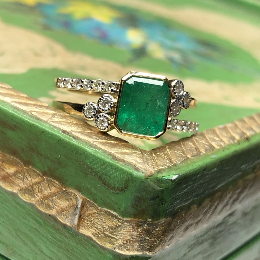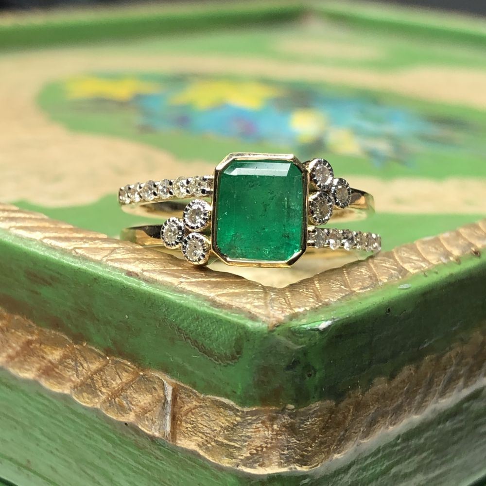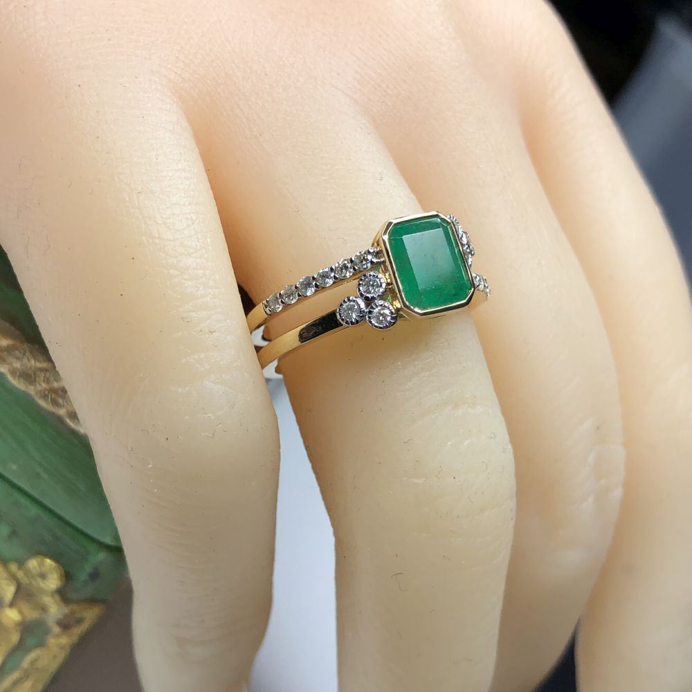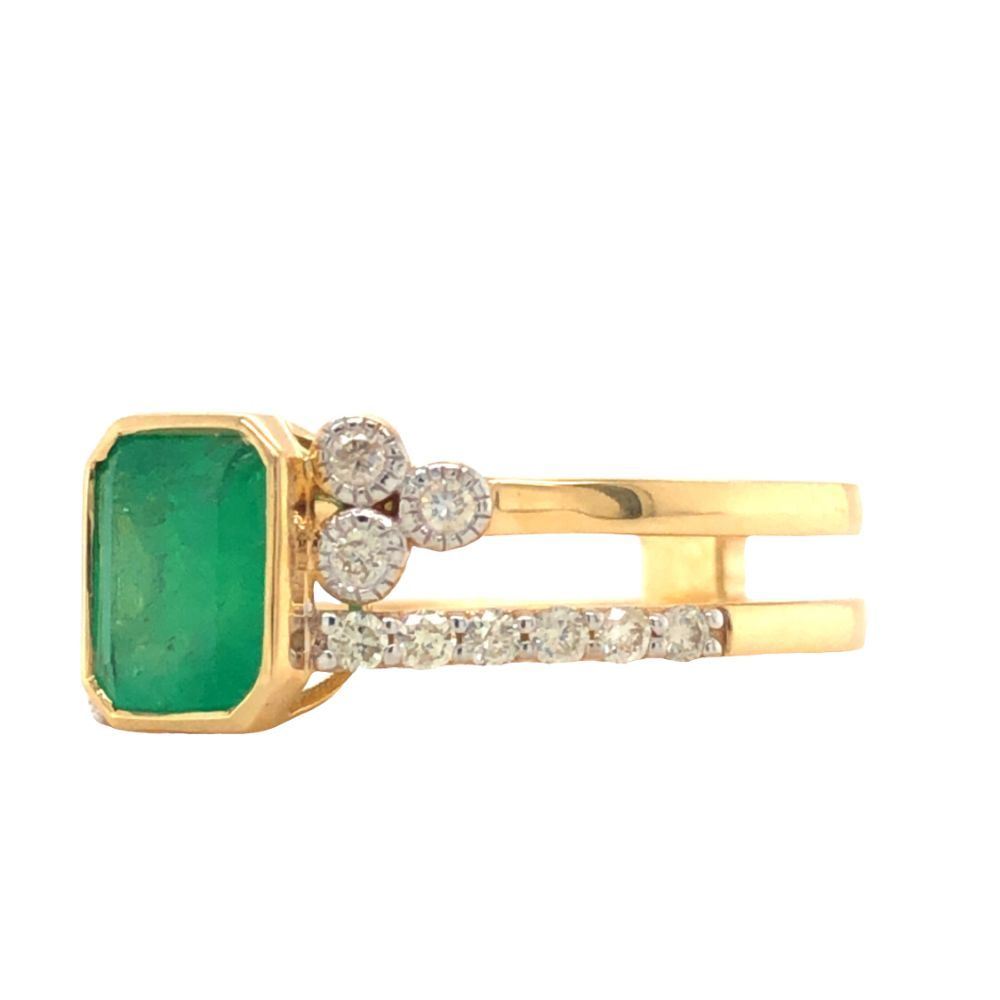 E6433/12 - LEN TITLE DESCRIPTION: 18k Emerald & Diamond Asymmetric Ring DESCRIPTION DETAIL: A unique rectangular shaped Emerald and Diamond double shank ring. The ring features a bezel set Emerald with round brilliant natural Diamonds on each side of the shank. OVERALL CONDITION: Excellent, New STONE: Emerald (Beryl) Shape: Emerald-Cut Weight: ~1.49 Carats Color: Green DIAMONDS: Natural Shape: Round, Brilliant-Cut Weight: ~0.26 Carats Total Weight Color: G-H Clarity: SI1-SI2 METAL: 18K Yellow Gold WEIGHT: 5.2 Grams SIZE: 6.75 DESIGNER: Oscar Friedman APPRAISAL DETAILS: This ring is certified and appraised for $8,120.00 estimated retail replacement value by GemAssure Gemological Appraisals (GGA). Please inquire about sizing, if needed and allow an additional 10 days for shipping if we resize it. THIS ITEM IS FROM AN ORDERED LIQUIDATION OF A MAJOR JEWELRY MANUFACTURER'S OVERSTOCKED INVENTORY. PRIOR TO BIDDING READ THE DESCRIPTION, TERMS, AND CONDITIONS CAREFULLY This description and condition report is provided for your convenience based on the information provided by the consignor. CAA is not responsible for any discrepancies between this information and other opinions. Buyers Premium: 18% Payment Due in 5 days All items shipped to registered address - NO EXCEPTIONS E6433/12 - LEN