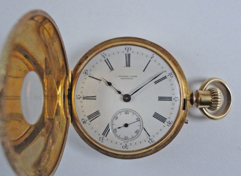 18k GOLD HENRY CAPT DEMI-HUNTING CASE WATCH, RUNS, RARE!