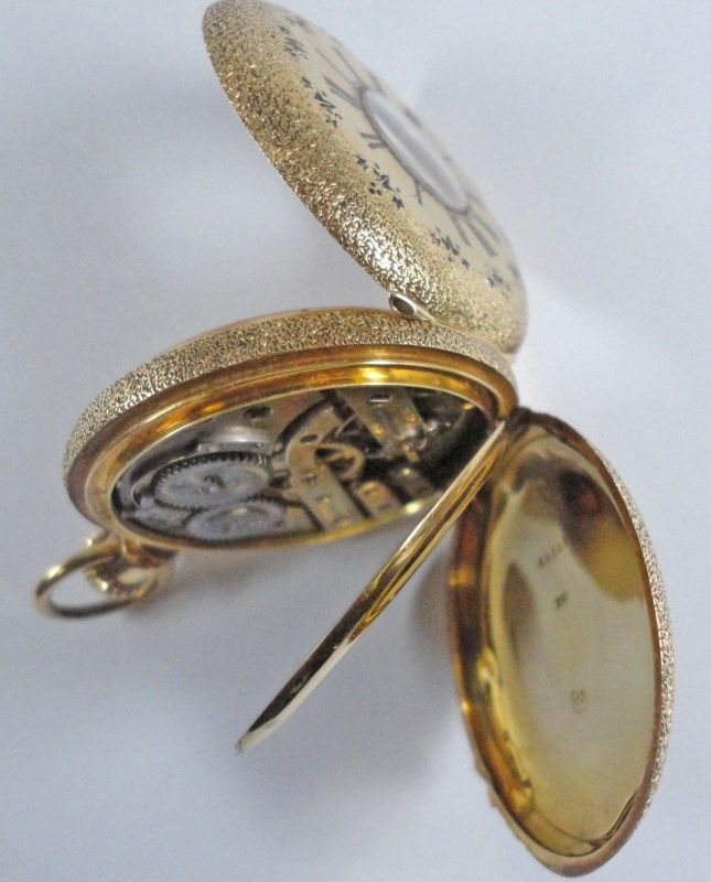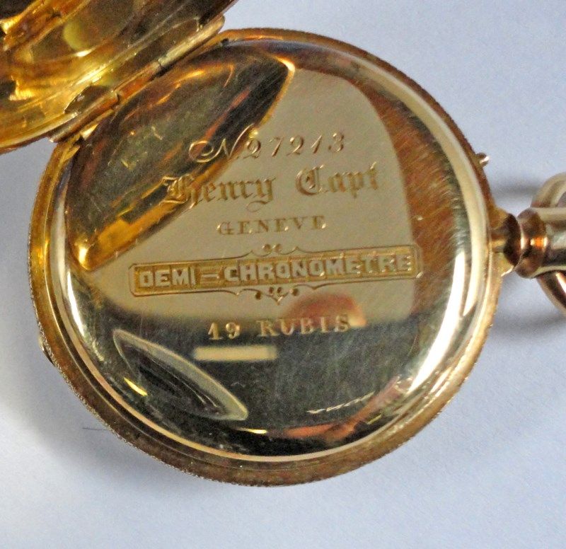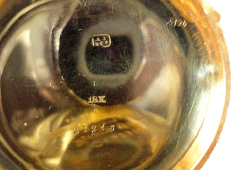 EST$ 7000 - $7500, SERIAL #27213, 19 RUBIS JEWELS, DEMI-CHRONOMETER, 18 K GOLD CASE, HAS INITIALS " E J S " on BACK COVER, BEAUTIFUL CONDITION, IN WORKING ORDER, FULLY FUNCTIONAL. NICE