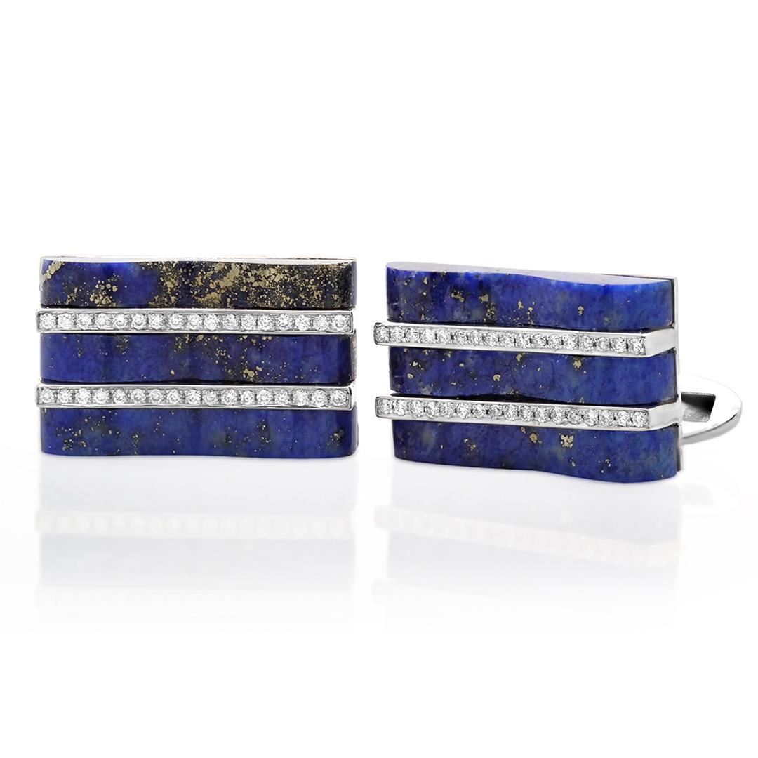 One 18k Gold 0.27CTW Diamond Cuff Links, (SI1/G-H) - Product Specification: Stone: Diamond Stone 2: Lapis Lazuli Stone 3: 6 Stone 3 Custom: Women Stone 4 Custom: SI1 / G-H Stone Clarity: SI1 Stone Color: G-H Stone Weight: 0.27 Weight: 1 Width: 12.0mm