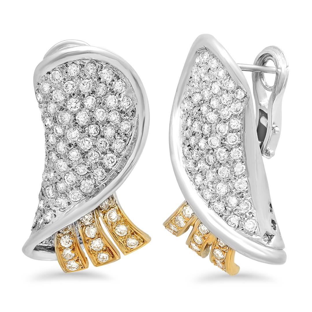 One 18k Gold 3.05CTW Diamond Earrings, (SI2-SI3/G-H) - Product Specification: Stone: Diamond Stone 3 Custom: Women Stone 4 Custom: SI2-SI3 / G-H Stone Clarity: SI2-SI3 Stone Color: G-H Stone Color to: H Stone Count: 152 Stone type: Round Stone Weight: 3.05 Weight: 1 Width: 20.0mm