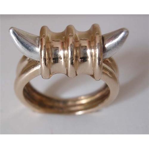 <tr><td>Title:18k Gold Bull Horn Ring by Zolotas</td></tr>