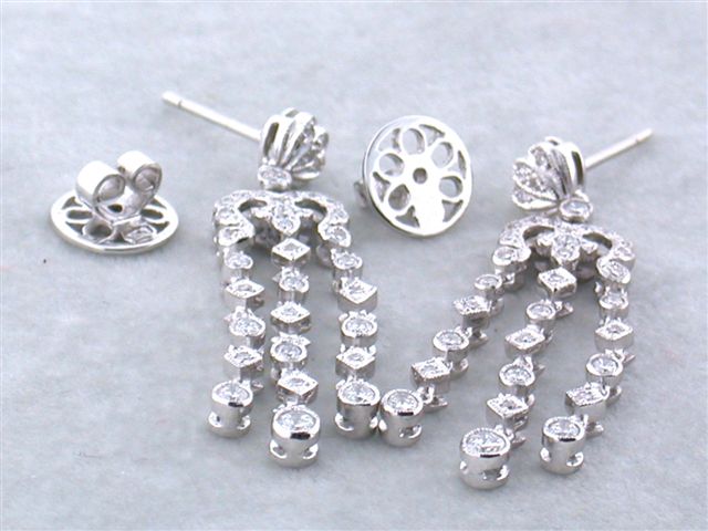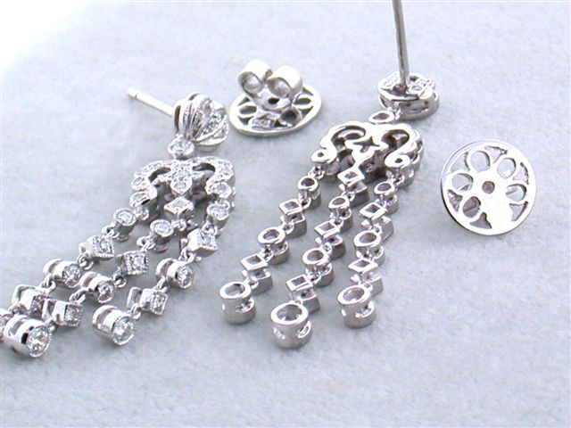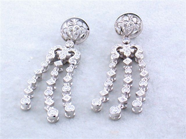 18k White Gold Earrings with Diamonds. This is a Dangling Earrigs in 18k White Gold with Diamonds of 0.90 carat in G color and VS clarity. The earrings' Length is approximately 1.5 inches long and Weighs 6.9 grams.