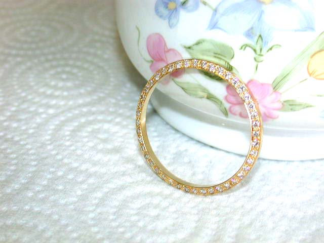 18k Yellow Gold Bezel. With Diamonds of 1.00 carat in G color and VS clarity and the Diameter is 1 and 1/16 inches and weigh 5.3 grams.