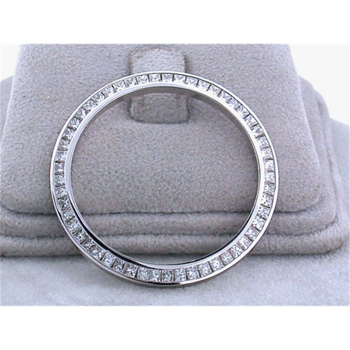 18k White Gold Bezel. Diamond Bezel for Men's DATED Rolex with 2.60 carats Diamonds in G color and VS clarity. The Diameter is 1.5 inches and weighs 7.6 grams.