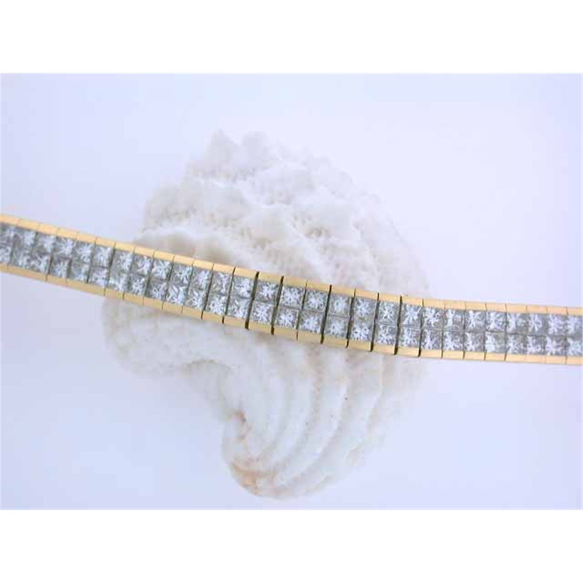 18k Yellow Gold Bracelet. The bracelet has 18k yellow gold and Diamonds - 12.0 carats, 138 pieces, princess cut, G color and VS clarity. Its Length - approximately 7 inches long; \Width - approximately 6.4 mm; Thickness - approximately 4.5 mm; and \Weight - 39.69 grams.