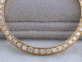 18k Gold Diamond Men's Bezel for DATED Rolex with 1.0 carat diamond in G color and VS clarity. The diameter is approximately 1 and 1/16 inches and it weighs 5.3 grams