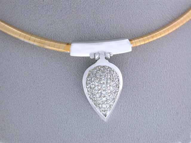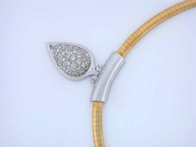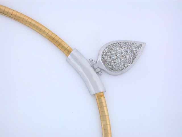 18k Gold Necklace. The necklace has two tone 18k Gold and Diamonds - 1.50 carats, 42 pieces, round cut, G color and VS clarity. Its Length - approximately 17.5 inches long and Weight - 43.0 grams.