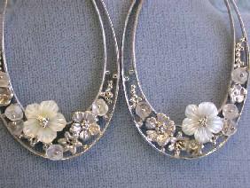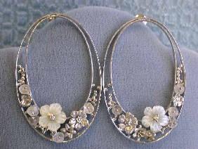 18k White Gold Earrings with Diamonds and Mother of Pearl. The Weight is 13.4 grams and the length is approximately 2 inches long