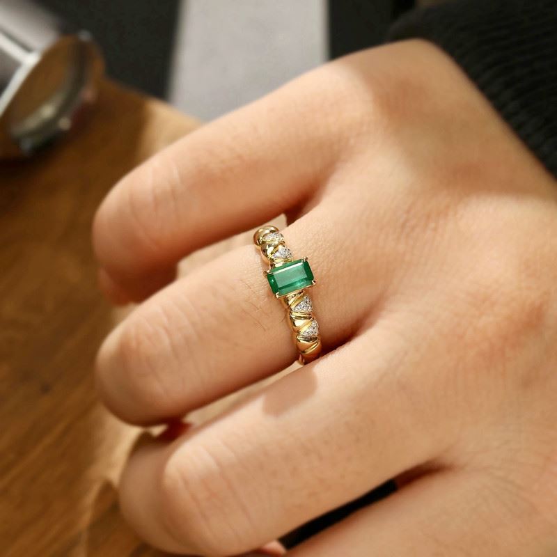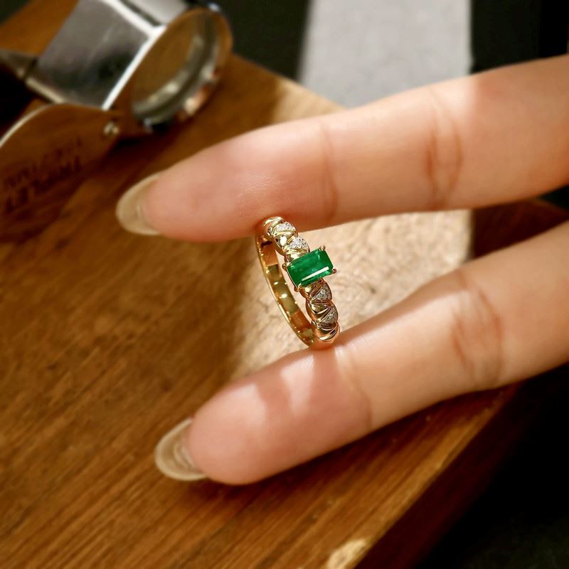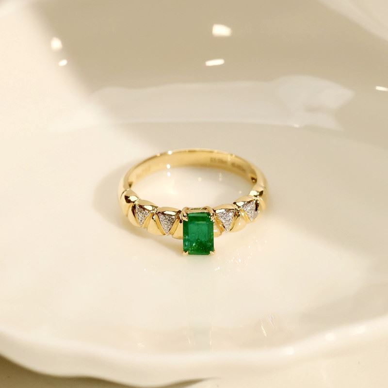 This 18k gold emerald ring features a brilliant emerald gemstone surrounded by delicate diamonds, creating an elegant contrast. The perfect combination of the metal and gemstones showcases both classic and modern beauty. Suitable for any special occasion, this is a luxurious piece worth collecting.Ring size: 6, circumference: 52 mm, diameter: 16.6 mm, total weight: 3.32g.Note: GUILD certificate, comes with a jewelry, gemstone, and precious metal authentication certificate.