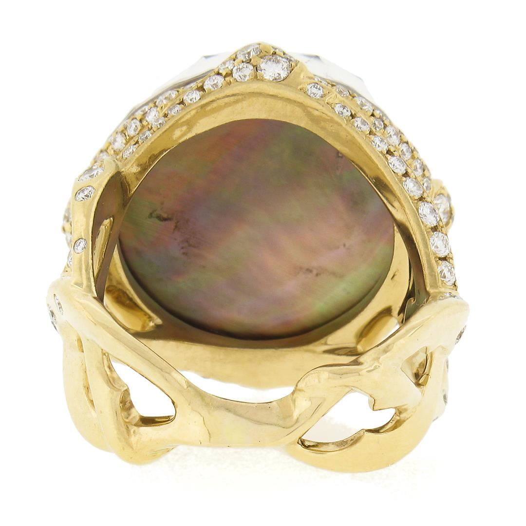 18k Gold Faceted Rock Crystal Black Mother of Pearl Ring w/ 1.20 ctw Diamonds