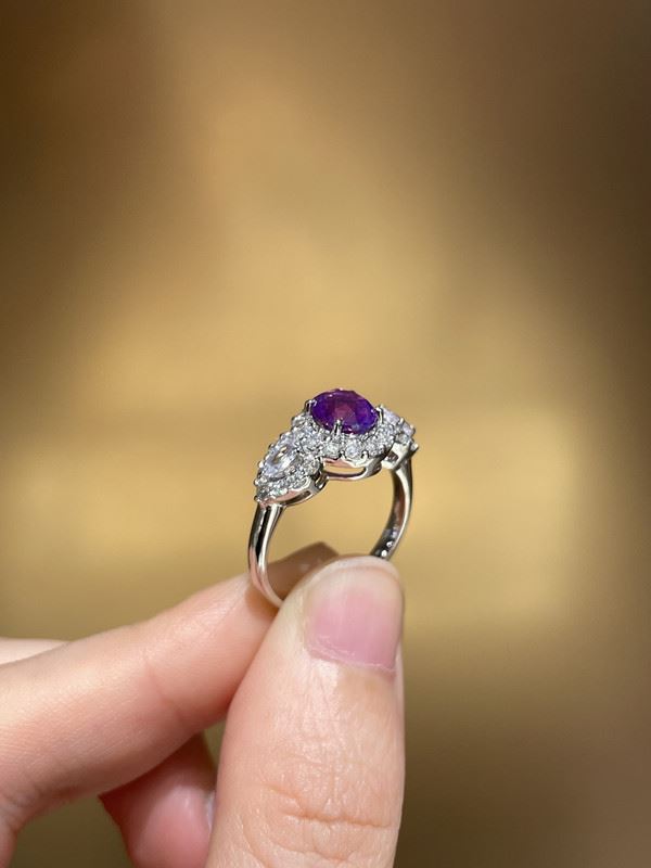 This 18k gold ring features a stunning unheated sapphire at its center, surrounded by dazzling diamonds that enhance its brilliance. The deep color of the sapphire and the sparkle of the diamonds combine to create a luxurious and unique piece of jewelry, perfect for any occasion. Total weight: 4.78g.Note: GUILD certificate, comes with a jewelry, gemstone, and precious metal authentication certificate.