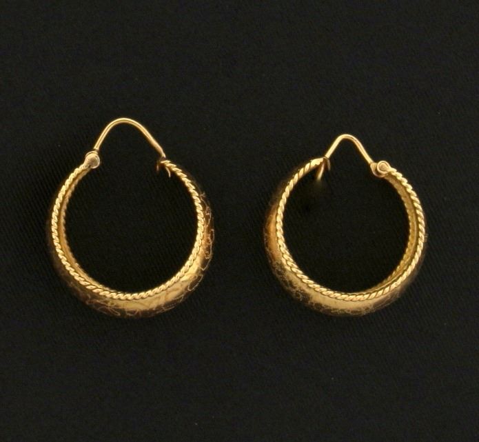 In 18k yellow gold, beaded edges. 7/8 inch long. 5.2g.