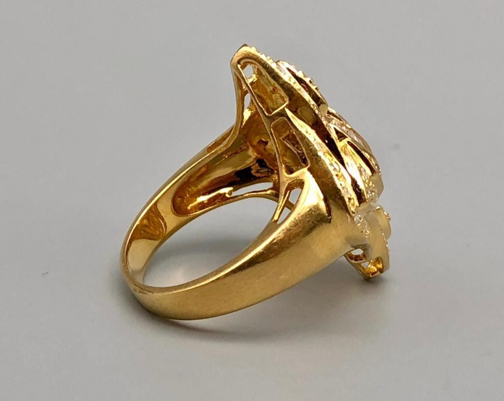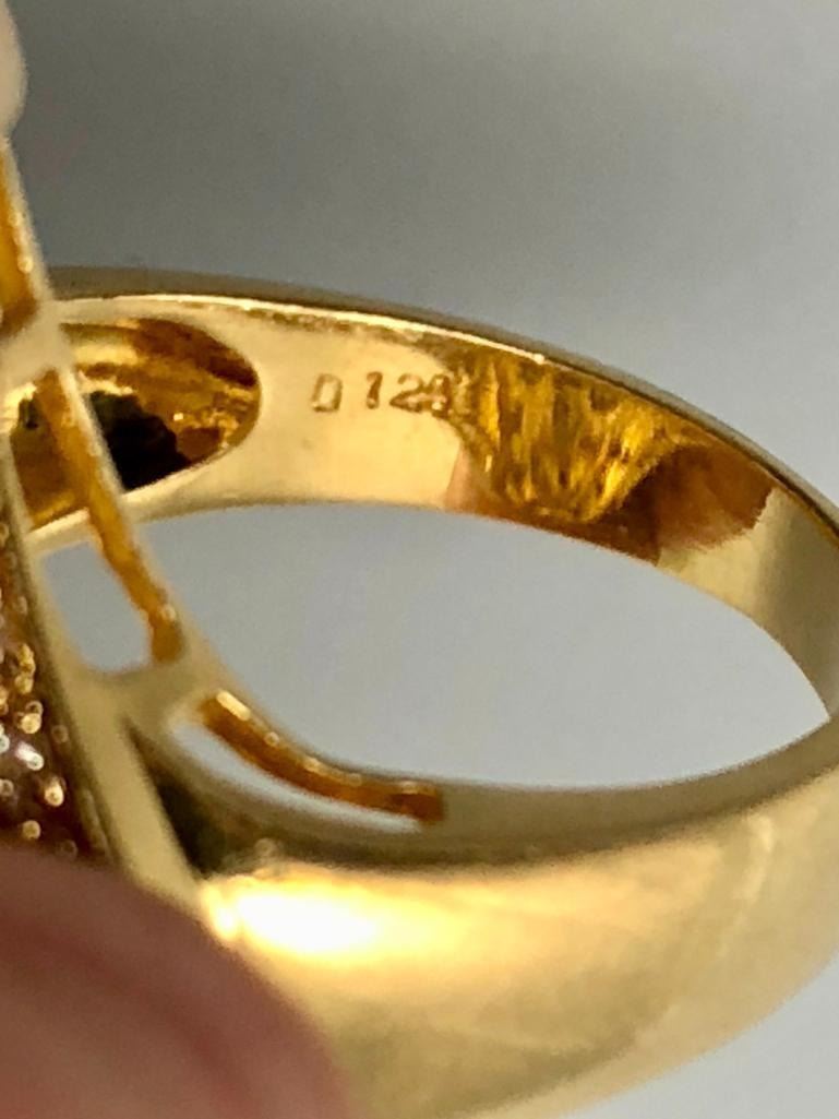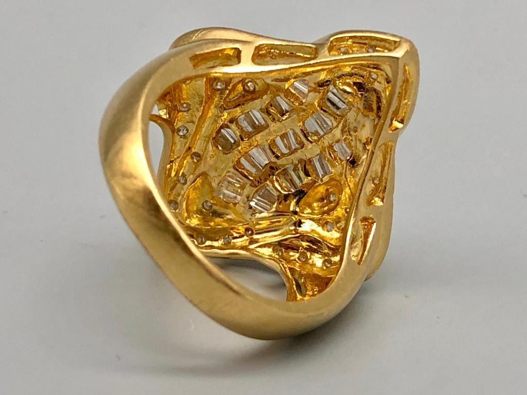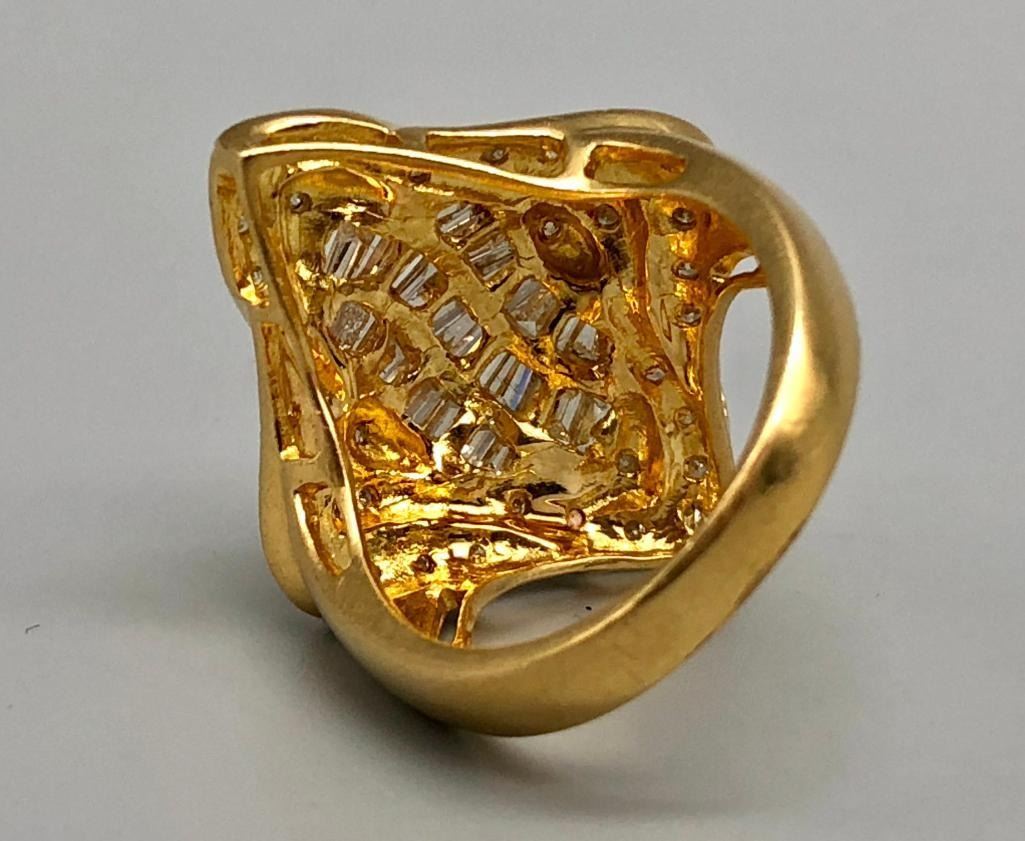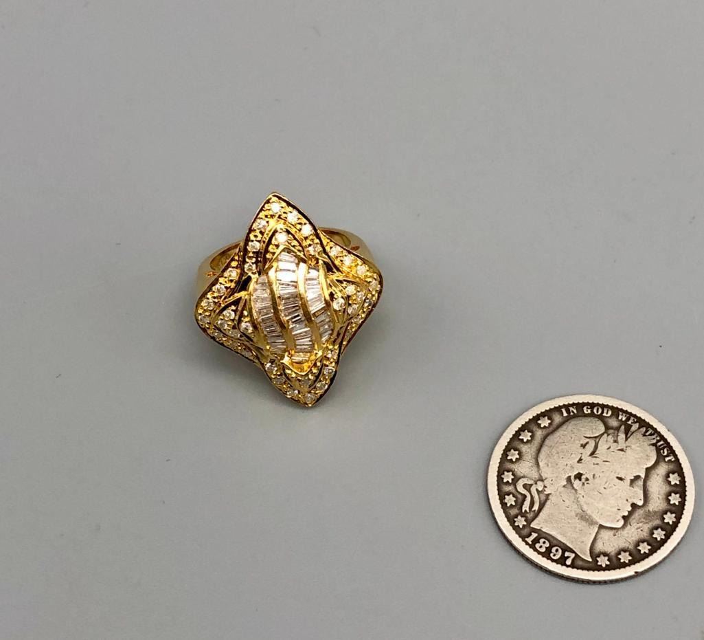 Offered for sale in this lot is a 18k gold and diamond ring. This is a beautiful and unique style ring set with over a carat of diamonds. It is a very classy style ring and is made from 18k gold. MAKER: Hallmarked. APPROX AGE: Fairly modern. SIZE: Fits a size 7. 1-1/8 inches long. Weighs 12.6 grams. CONDITION: Good for its age, normal wear expected. Please look closely at the pictures as they are an important part of our description and are hereby incorporated into the description, specifically with regards to condition. SHIPPING: There will be a $5 handling / packaging fee for shipping this lot. The actual cost of postage will be added on top of that. BUY IT NOW: If you would like to buy this item now, without waiting for the auction day to bid on it, we do offer this option (which is available up to 48 hours before the actual auction starts). The “Buy it Now†price is the high estimate of this lot (plus applicable fees and the Buyer's premium is discounted to 10% when using the Buy it Now option). If you would like to exercise this option, you must contact us by email (or phone as long as you talk to someone live). Reference this lot number and your intention to "Buy it Now."