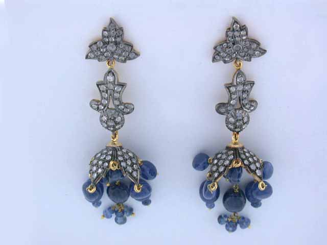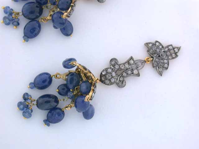 18k Gold and Silver Earrings. The earrings have Diamonds - 1.76 carats and Sapphires. Its Length - approximately 2.25 inches long and Weight - 14.61 grams.
