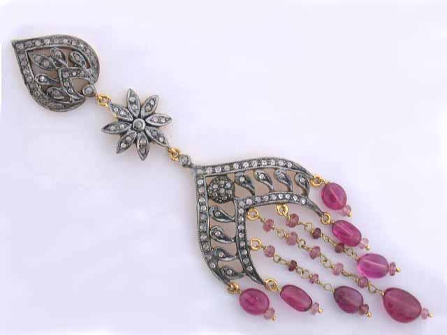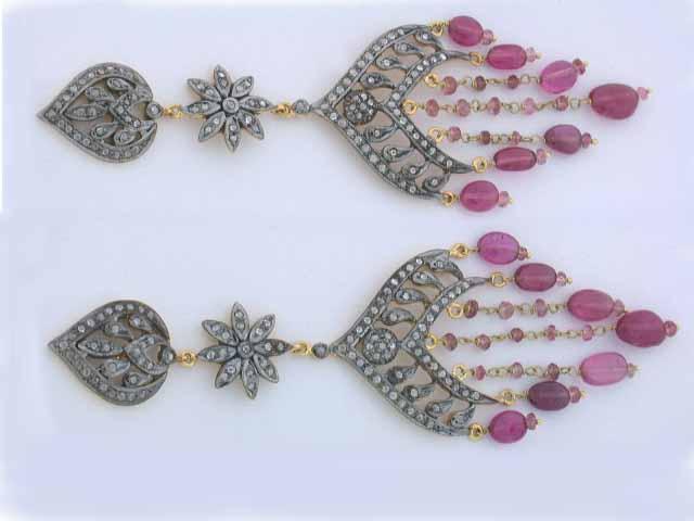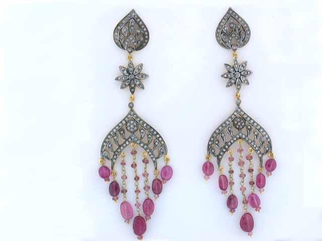 18k Gold and Silver Earrings w/ Diamonds - 1.94 carats and Tourmaline - 14.30 carats. Approximately 3.75 inches long and weighs 16.04 grams