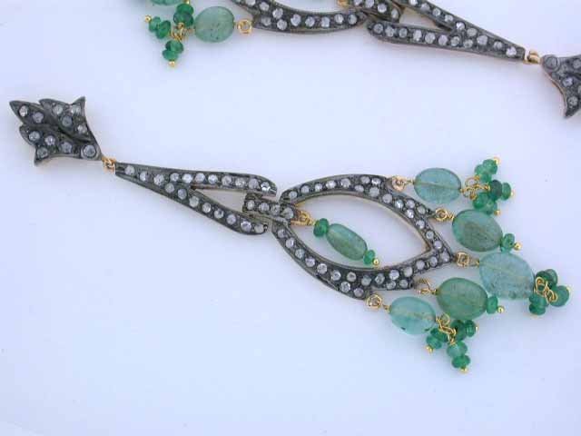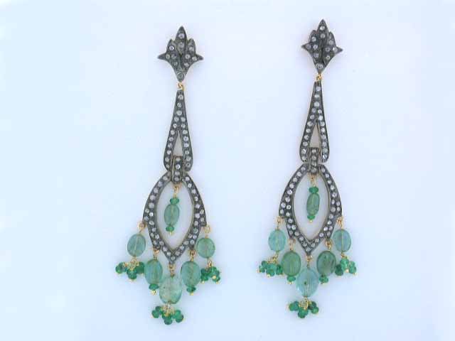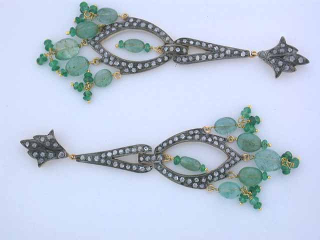 18k Gold and Silver Earrings. The earrings have Diamonds - 1.82 carats and Emerald - 12.15 carats. Its Length - approximately 3 inches long and Weight - 11.16 grams.