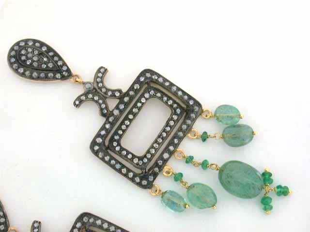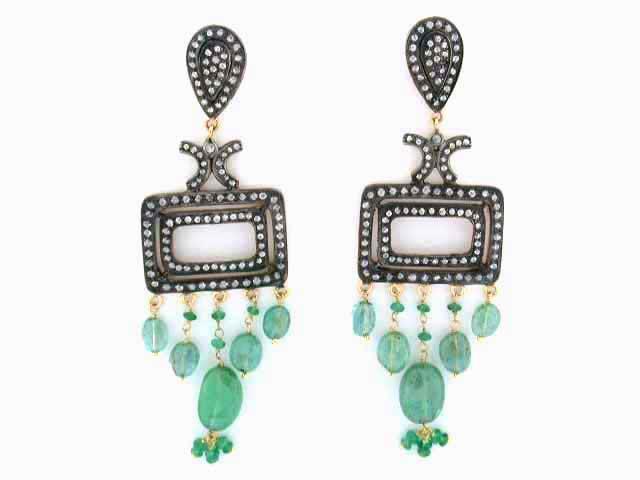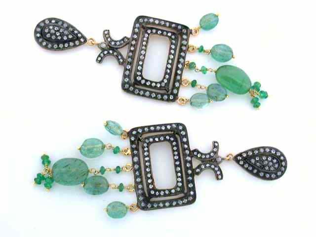 18k Gold and Silver Earrings with Emerald - 14.55 carats and Diamonds - 2.12 carats. The length is approximately 2.75 inches long and weighs 13.03 grams