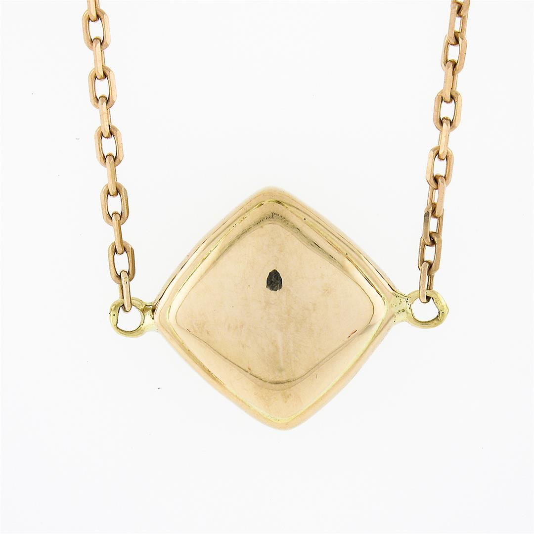 A solid 18k rose gold cushion pendant necklace, with 25 round brilliant cut natural diamonds (E/F - VS1/VS2 ; 0.60ctw). The pendant weighs a total of 4.69 grams, measures 11.80x12.30mm including the bail, and 16 inch cable link chain.