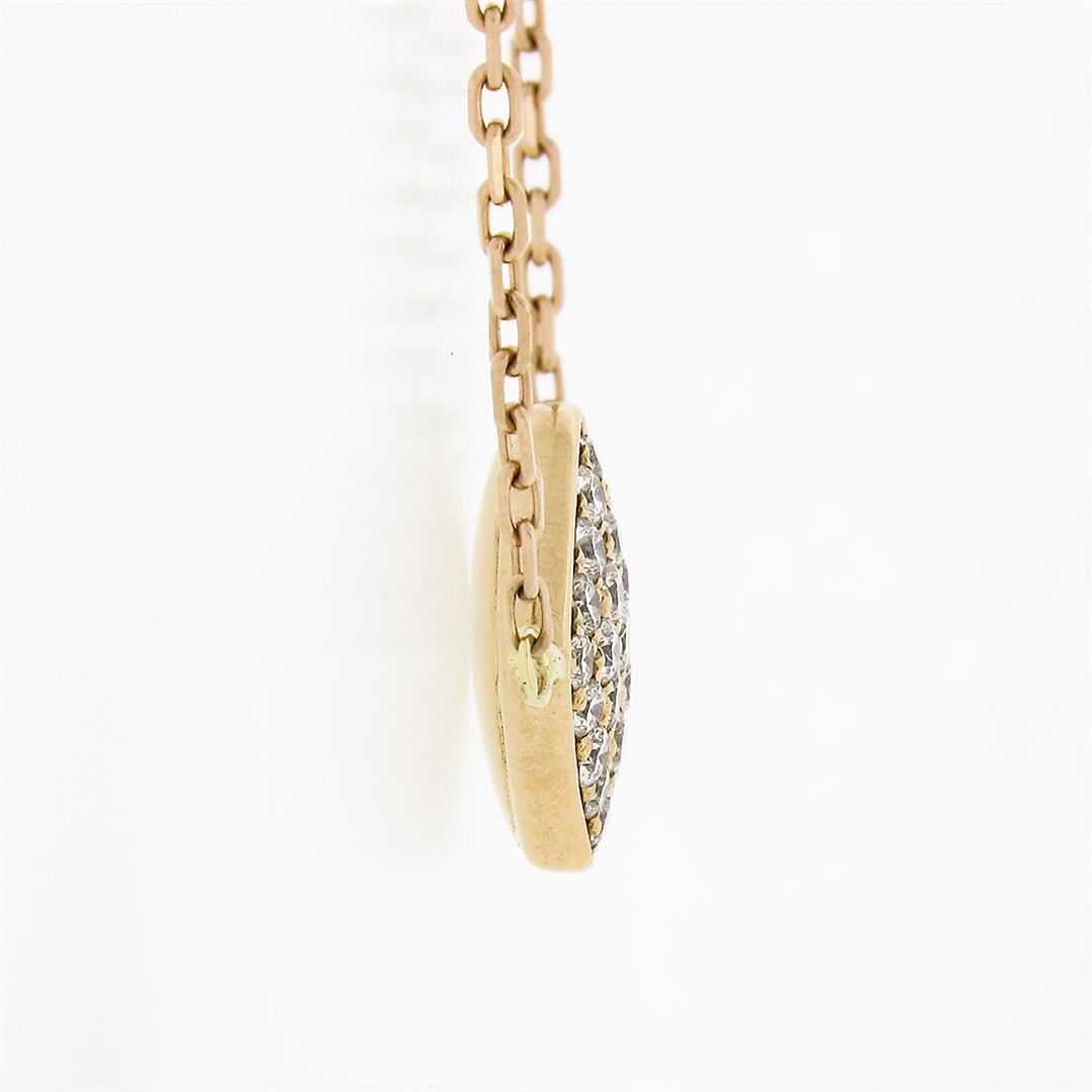A solid 18k rose gold cushion pendant necklace, with 25 round brilliant cut natural diamonds (E/F - VS1/VS2 ; 0.60ctw). The pendant weighs a total of 4.69 grams, measures 11.80x12.30mm including the bail, and 16 inch cable link chain.