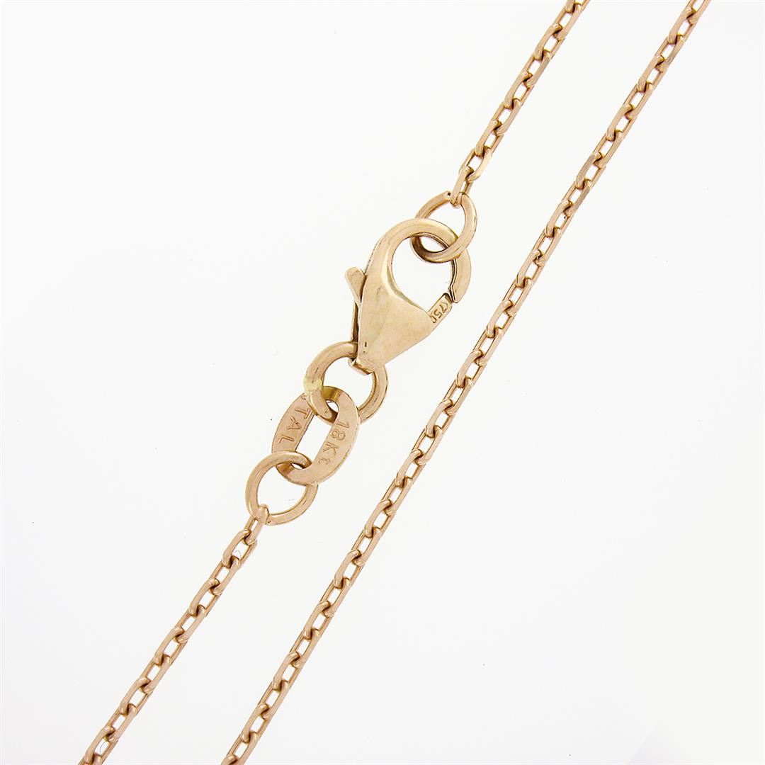 A solid 18k rose gold cushion pendant necklace, with 25 round brilliant cut natural diamonds (E/F - VS1/VS2 ; 0.60ctw). The pendant weighs a total of 4.69 grams, measures 11.80x12.30mm including the bail, and 16 inch cable link chain.