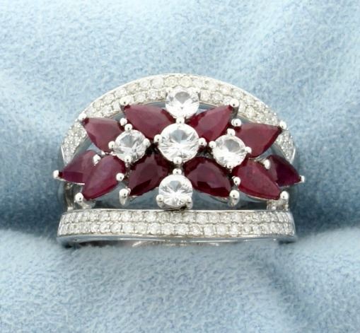 18k Ruby, Diamond, and White Sapphire Fashion Ring