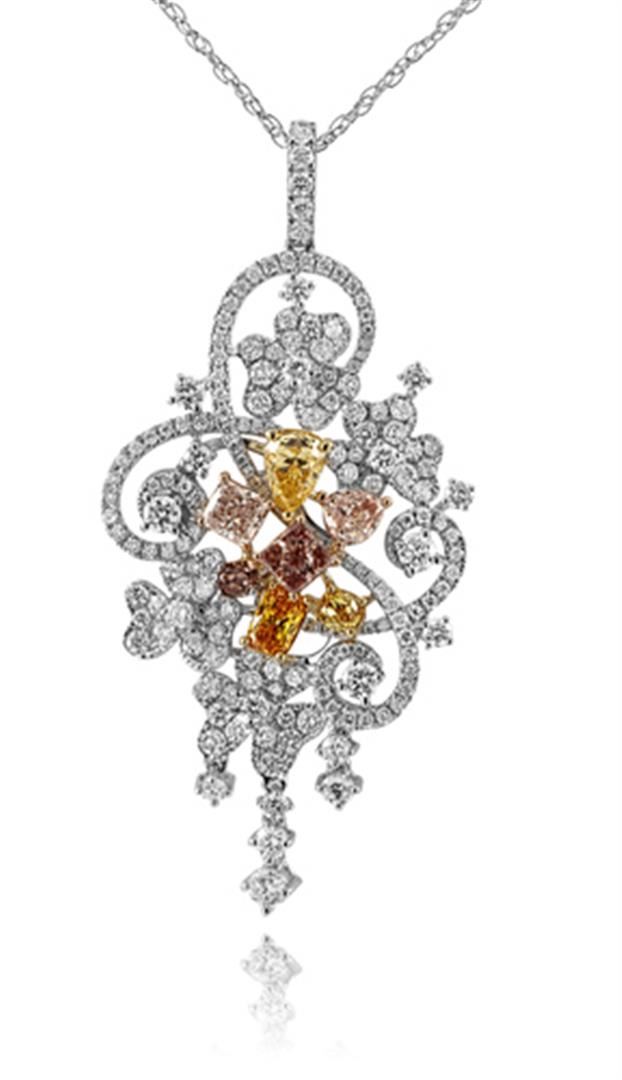 18k Three Tone Gold 3.10CTW Multicolor Dia, Pink Diamond and Diamond Pendant, (V