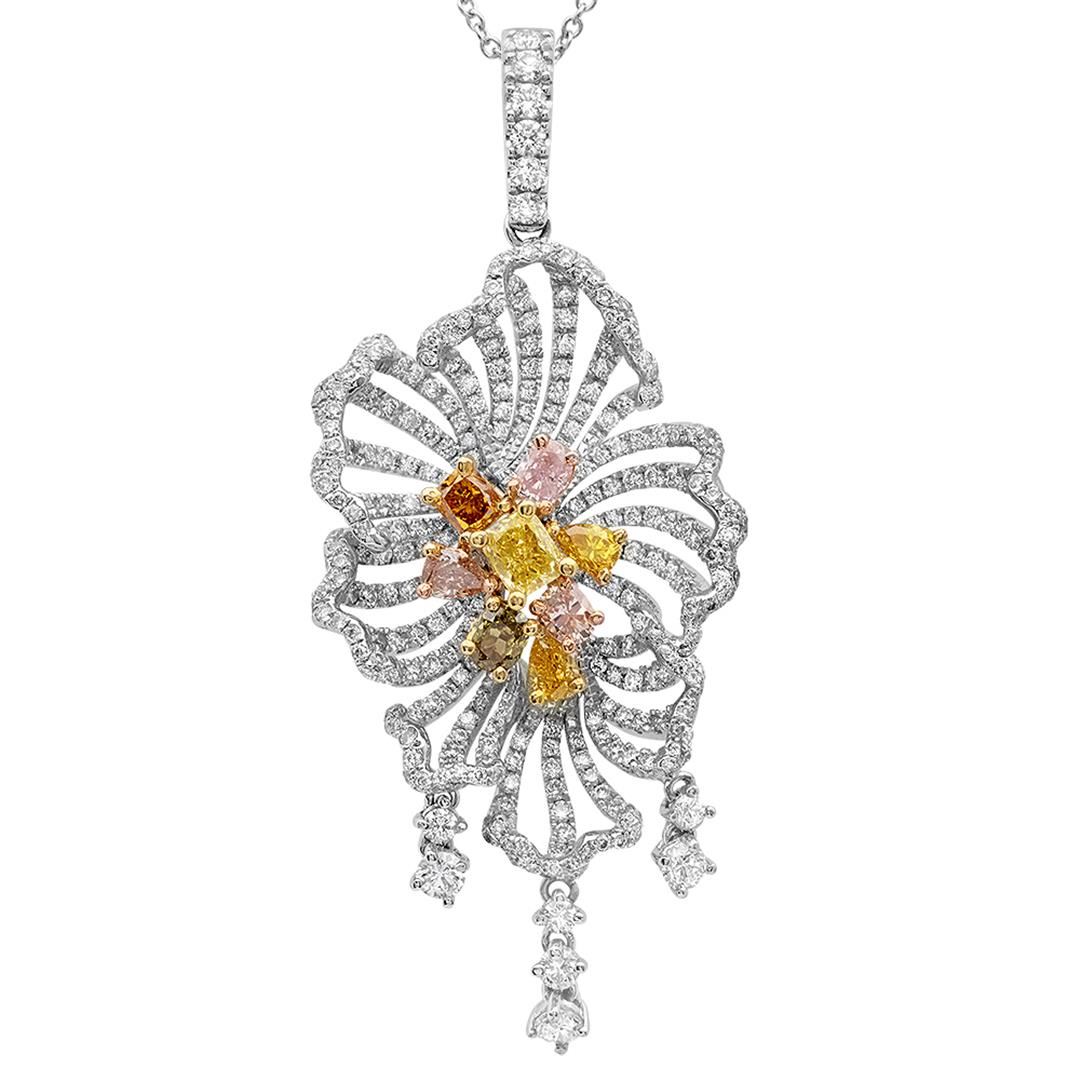 18k Three Tone Gold 3.13CTW Multicolor Dia and Pink Diamond and Diamond Pendant,