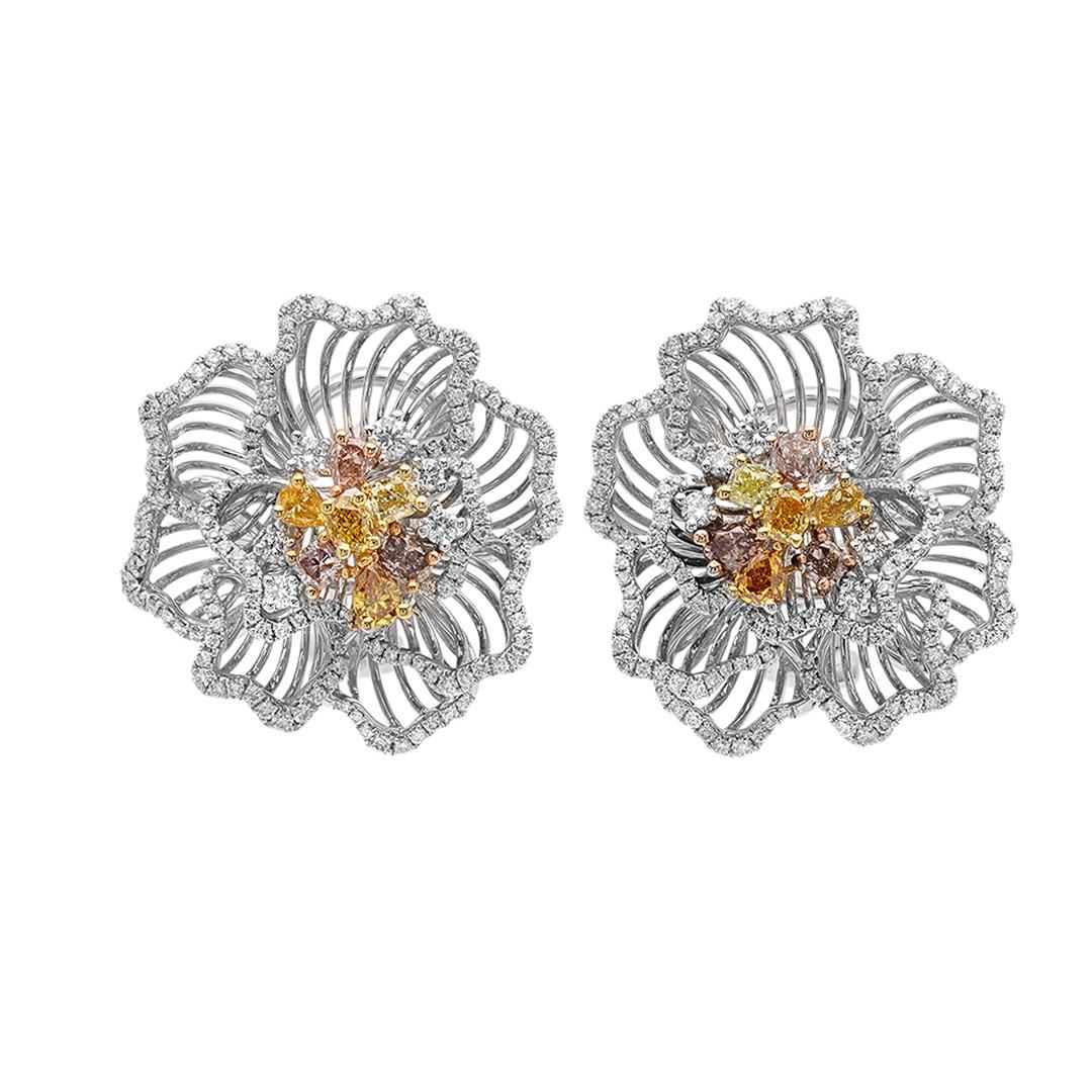 18k Three Tone Gold 3.30CTW Multicolor Dia, Pink Diamond and Diamond Earrings, (
