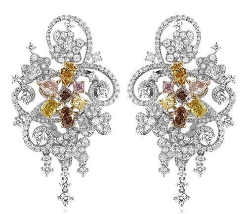 One 18k Three Tone Gold 5.63CTW Multicolor Dia, Pink Diamond and Diamond Earring, (SI1/VS1/Pink/F/Fan) - Product Specification: Stone: Multicolor Dia Stone 2: Pink Diamond Stone 2 Clarity: SI1 Stone 2 Color: PINK Stone 2 Weight: 1.46 Stone 3 Clarity: VS1 Stone 3 Color: F Stone 3 Custom: Women Stone 3 Weight: 3.13 Stone 4 Custom: SI1 / FAN Stone Clarity: SI1 Stone Color: Fan Stone Weight: 1.04 Weight: 1 Width: 24