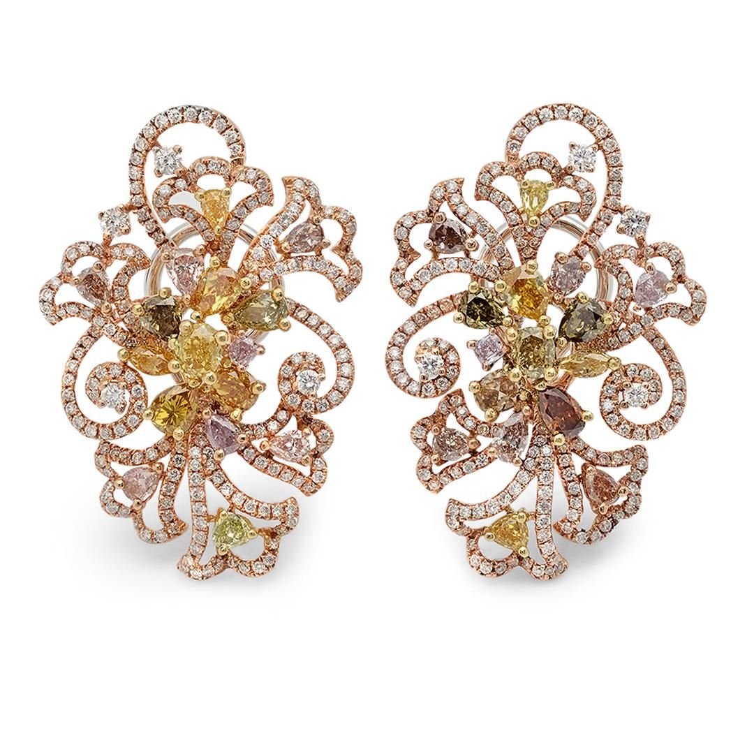 One 18k Three Tone Gold 6.29CTW Multicolor Dia and Pink Diamond and Diamond Earring, (VS1/Pink/G/Fan) - Product Specification: Stone: Multicolor Dia Stone 2: Pink Diamond Stone 2 Clarity: VS1 Stone 2 Color: PINK Stone 2 Weight: 1.29 Stone 3 Clarity: VS1 Stone 3 Color: G Stone 3 Custom: Women Stone 3 Weight: 2.07 Stone 4 Custom: VS1 / FAN Stone Clarity: VS1 Stone Color: Fan Stone Weight: 2.93 Weight: 1 Width: 22