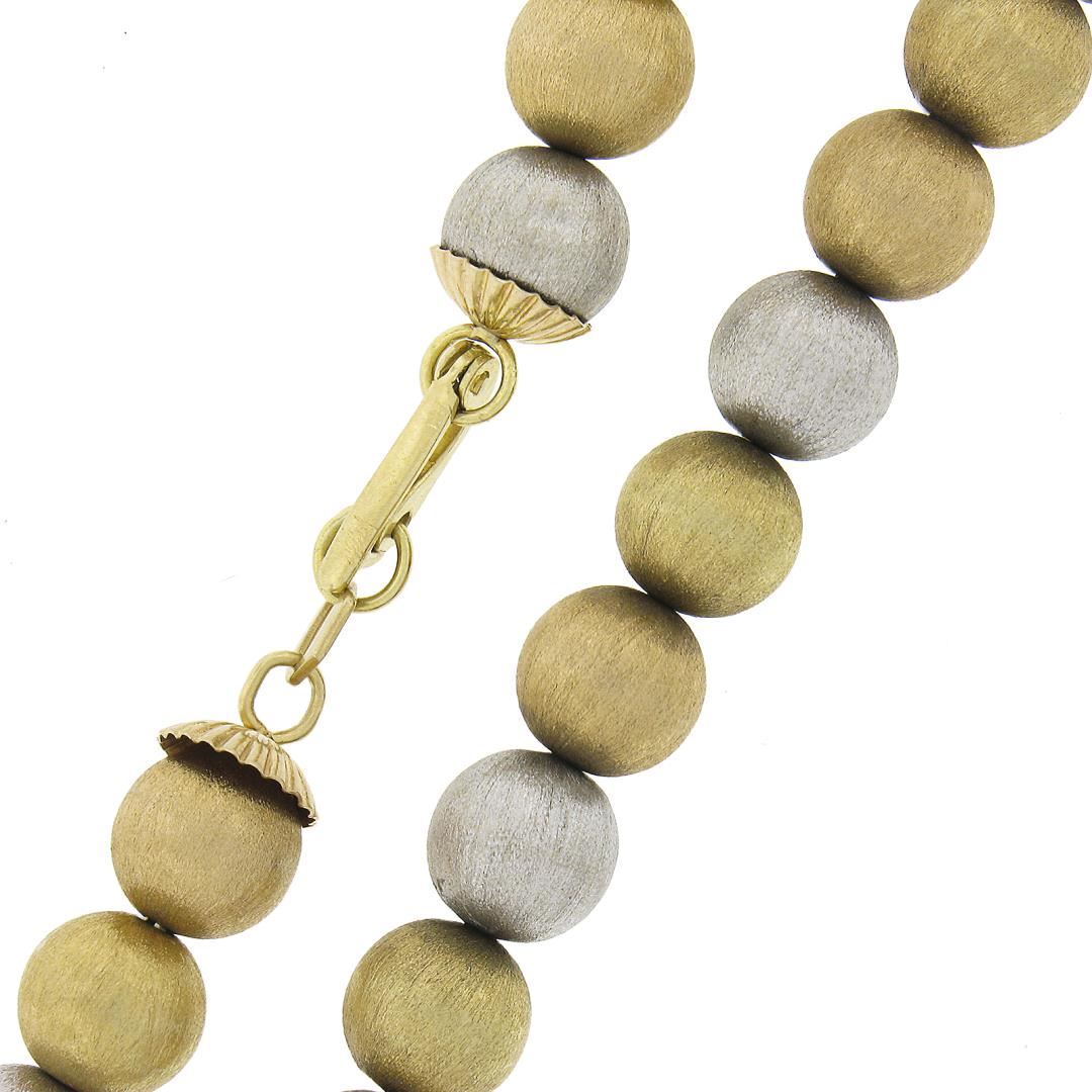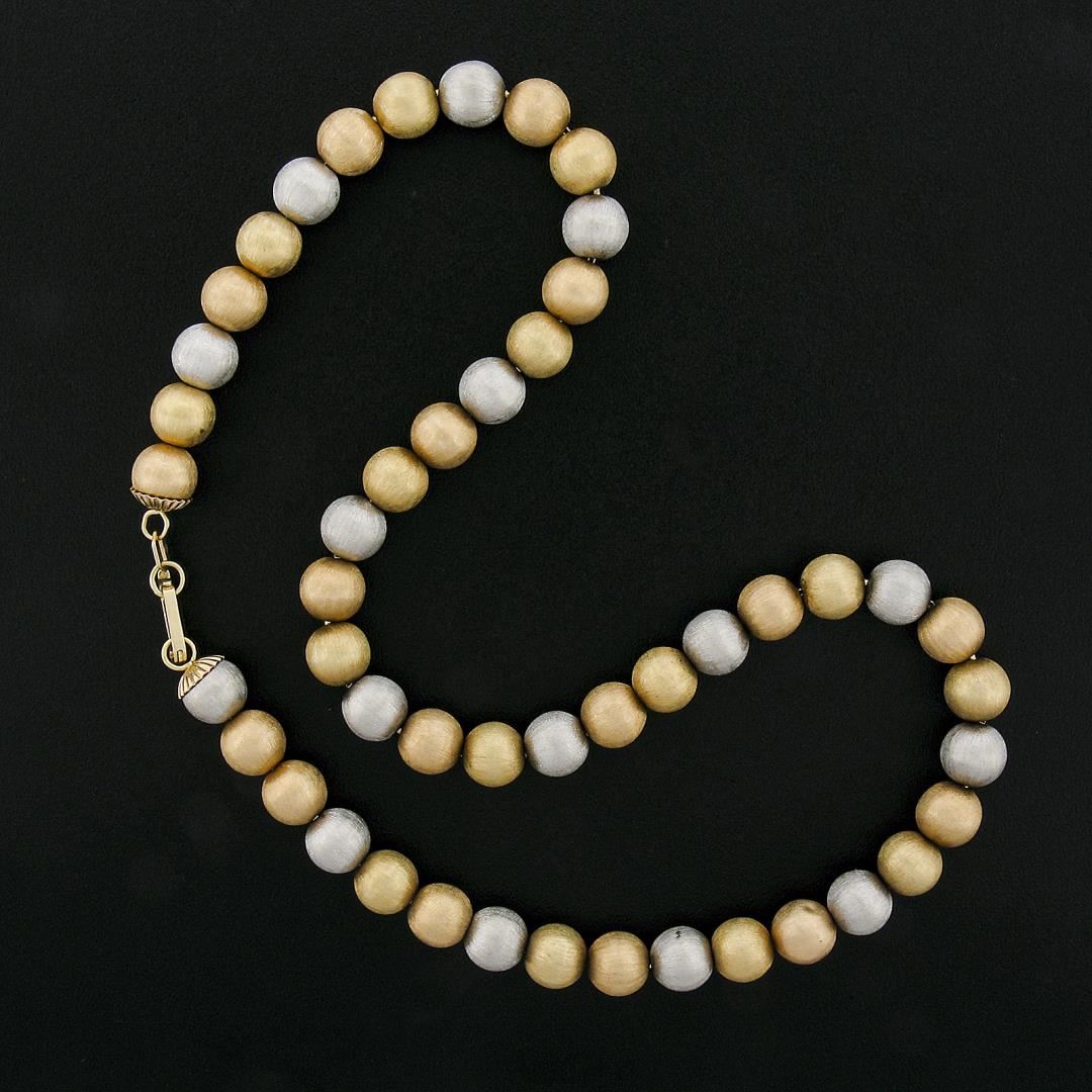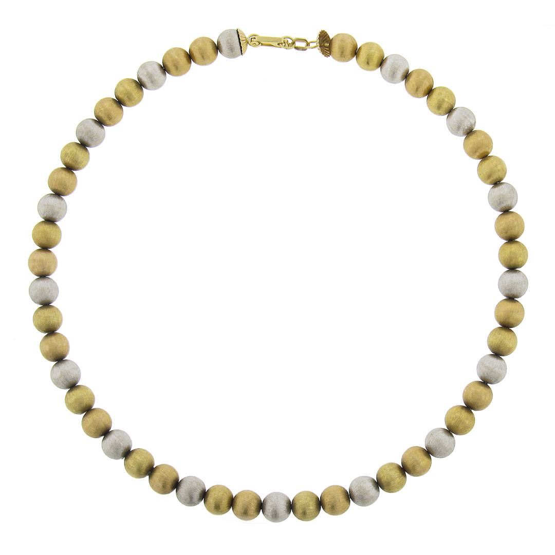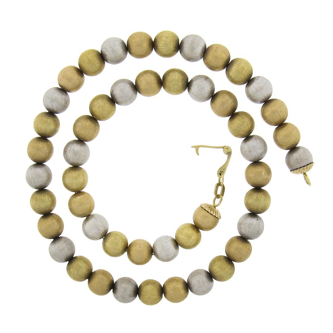 18k Tri Color Gold 15.5" Brushed Finish Ball Bead on a Gold Link Chain Necklace
