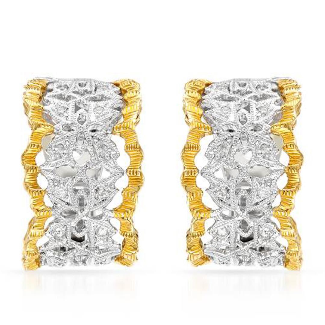 One 18k Two Tone Gold 0.22CTW Diamond Earring, (SI1/G-H) - Product Specification: Stone: Diamond Stone 2: Diamond Stone 2 Clarity: SI1 Stone 2 Color: G-H Stone 2 Type: Round Stone 2 Weight: 0.22 Stone 3 Custom: Women Stone 4 Custom: SI1 / G-H Stone Clarity: SI1 Stone Color: G-H Stone Color to: I Stone Count: 24 Stone type: Round Stone Weight: 0.22 Weight: 1 Width: 14.0mm