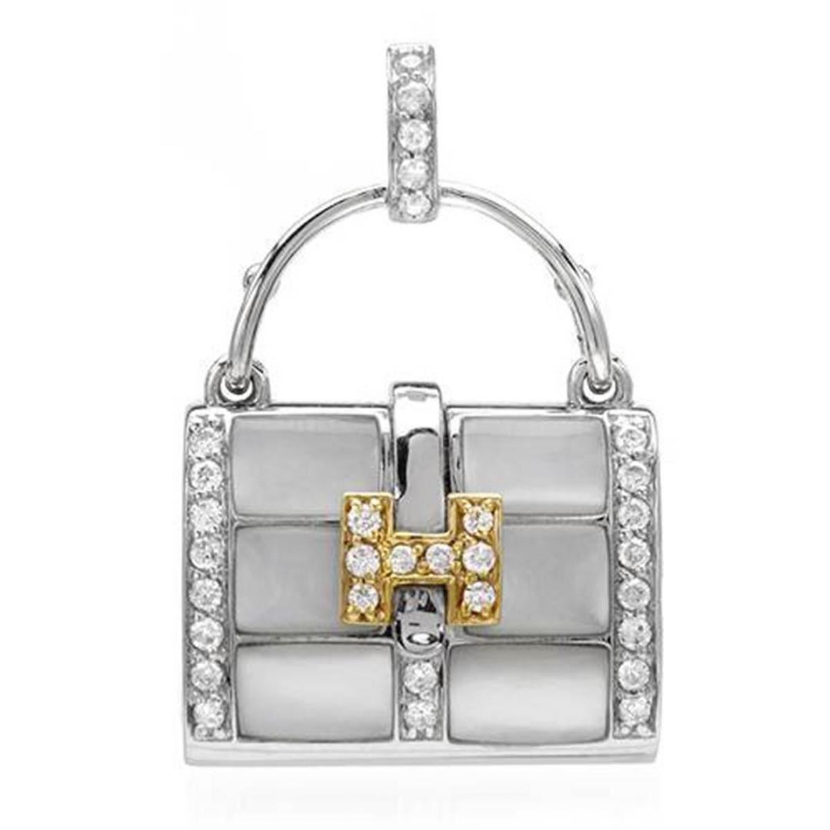 One 18k Two Tone Gold 0.30CTW Mother Of Pearl and Diamond Pendant, (I1-I2/White/H-I) - Product Specification: Stone: Diamond Stone 2: Mother Of Pearl Stone 2 Color: White Stone 2 Custom: 31 Stone 2 Shape: Round Stone 2 Type: Fancy Stone 3 Custom: Women Stone 4 Custom: I1-I2 / H-I Stone Clarity: I1-I2 Stone Color: H-I Stone type: Round Stone Weight: 0.3 Weight: 1 Width: 25.0mm