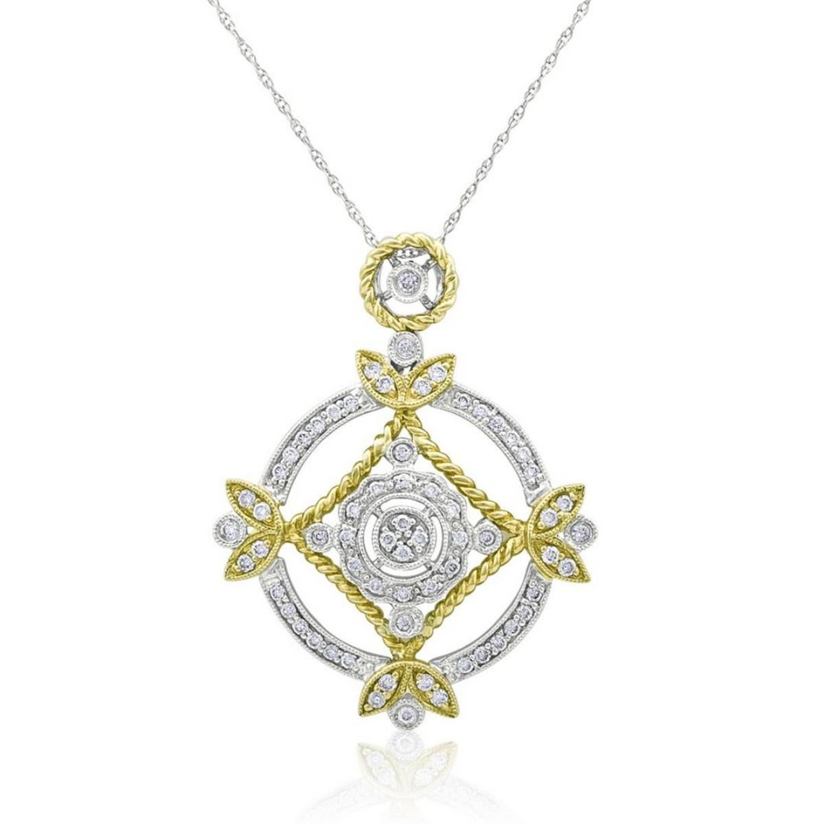 One 18k Two Tone Gold 0.54CTW Diamond Pendant, (SI1-SI1/H-I) - Product Specification: Stone: Diamond Stone 3 Custom: Women Stone 4 Custom: SI1-SI1 / H-I Stone Clarity: SI1-SI1 Stone Color: H-I Stone Color to: I Stone Count: 65 Stone type: Round Stone Weight: 0.54 Weight: 1 Width: 25.0mm