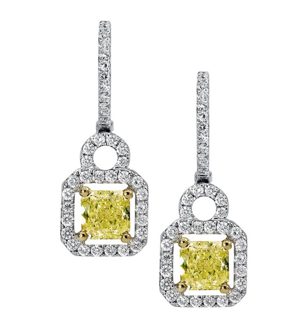 One 18k Two Tone Gold 1.50CTW Diamond Earring, (VS1-VS2/Nat-yel/G-H) - Product Specification: Stone: Diamond Stone 2 Color: NAT-YEL Stone 2 Custom: 2 Stone 2 Shape: Radiant Stone 2 Type: Diamond Stone 2 Weight: 1 Stone 3 Custom: Women Stone 4 Custom: VS1-VS2 / G-H Stone Clarity: VS1-VS2 Stone Color: G-H Stone Color to: H Stone Count: 78 Stone type: Round Stone Weight: 0.5 Weight: 1