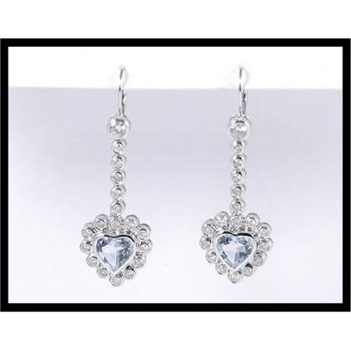 An adorable 18K white gold topez and diamond dangling earrings containing 2 topez weighing approximately 2.50 carats. Also set are 36 small diamonds that have an estimated total weight of 0.84 carats.