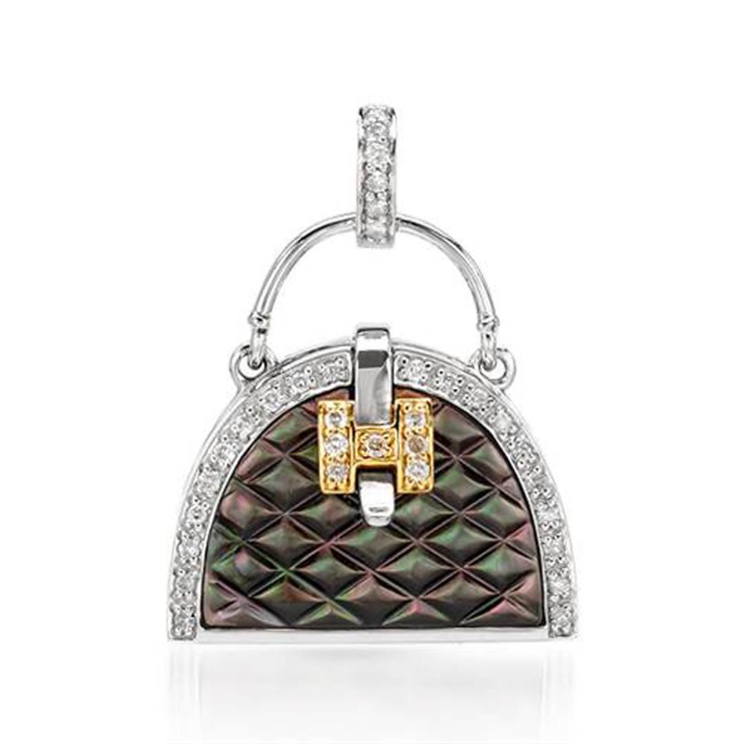 One 18k White Gold 0.25CTW Mother Of Pearl and Diamond Pendant, (I1-I2/Black/H-I) - Product Specification: Stone: Diamond Stone 2: Mother Of Pearl Stone 2 Color: Black Stone 2 Custom: 33 Stone 2 Shape: Round Stone 2 Type: Fancy Stone 3 Custom: Women Stone 4 Custom: I1-I2 / H-I Stone Clarity: I1-I2 Stone Color: H-I Stone type: Round Stone Weight: 0.25 Weight: 1 Width: 25.0mm