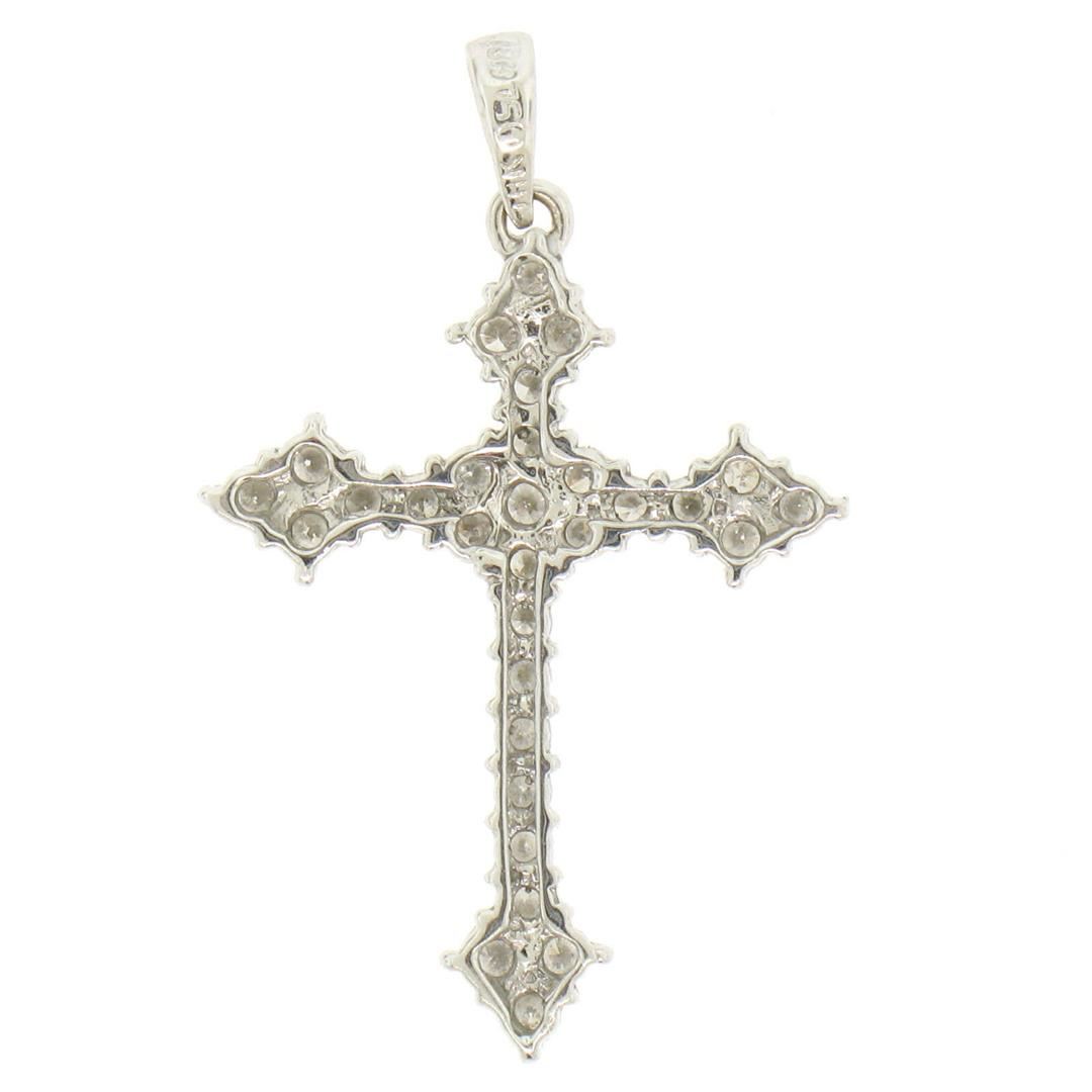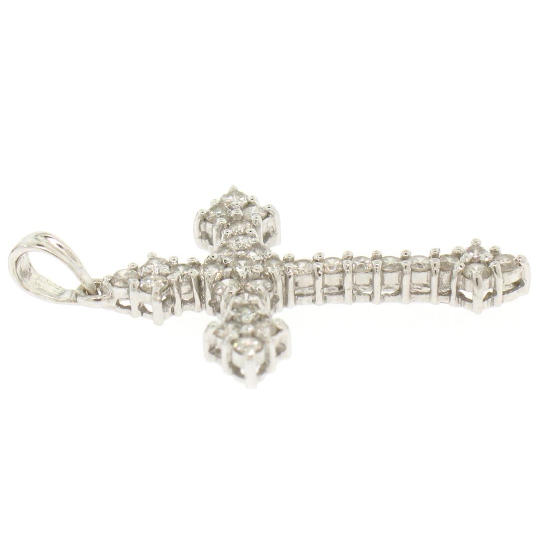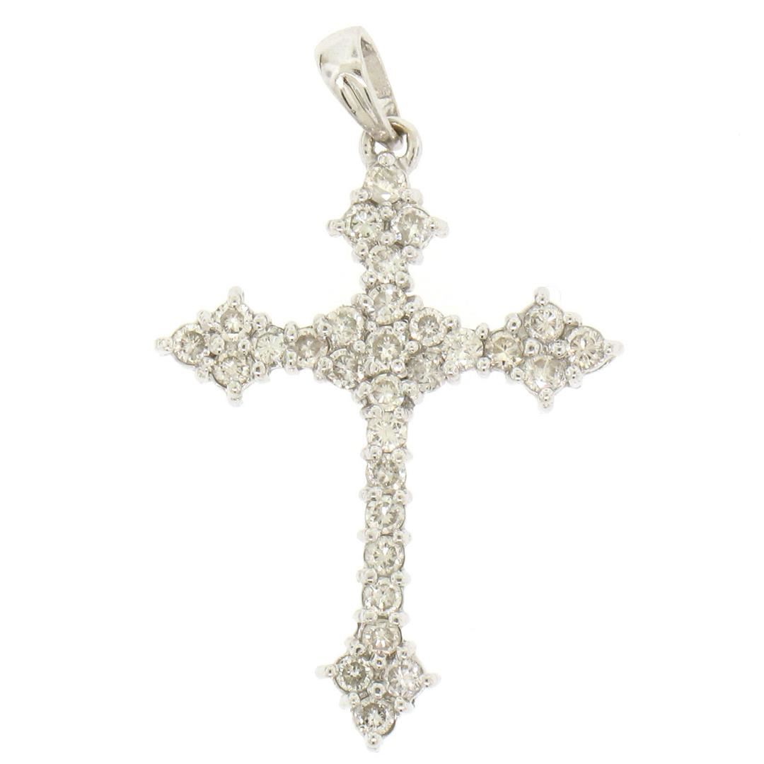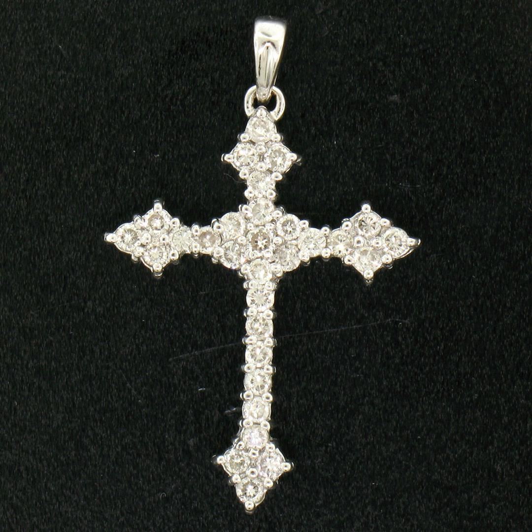 One NEW 18k White Gold 0.65ctw Prong F VS Round Diamond Petite Cross Pendant 1.9g. Item Details: Material: 18K Solid White Gold, Weight: 1.9 Grams, Stone(s): (30) Natural Genuine Diamonds - Round Brilliant Cut - Prong Set - VS2 Clarity - F/G Color, Total Carat Weight: 0.65ctw (approx.), Chain Type: Not Included, Width: 19.45mm, Height (w/ Bail): 30.90mm, Height (w/o Bail): 26.30mm Thickness: 2.91mm Bail Measurements: 2.8x3.85mm Condition: Brand New w/o Tag!