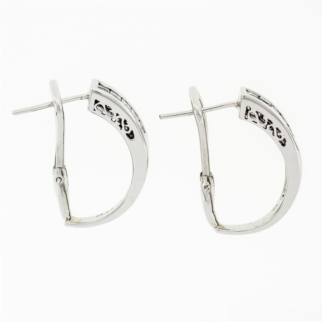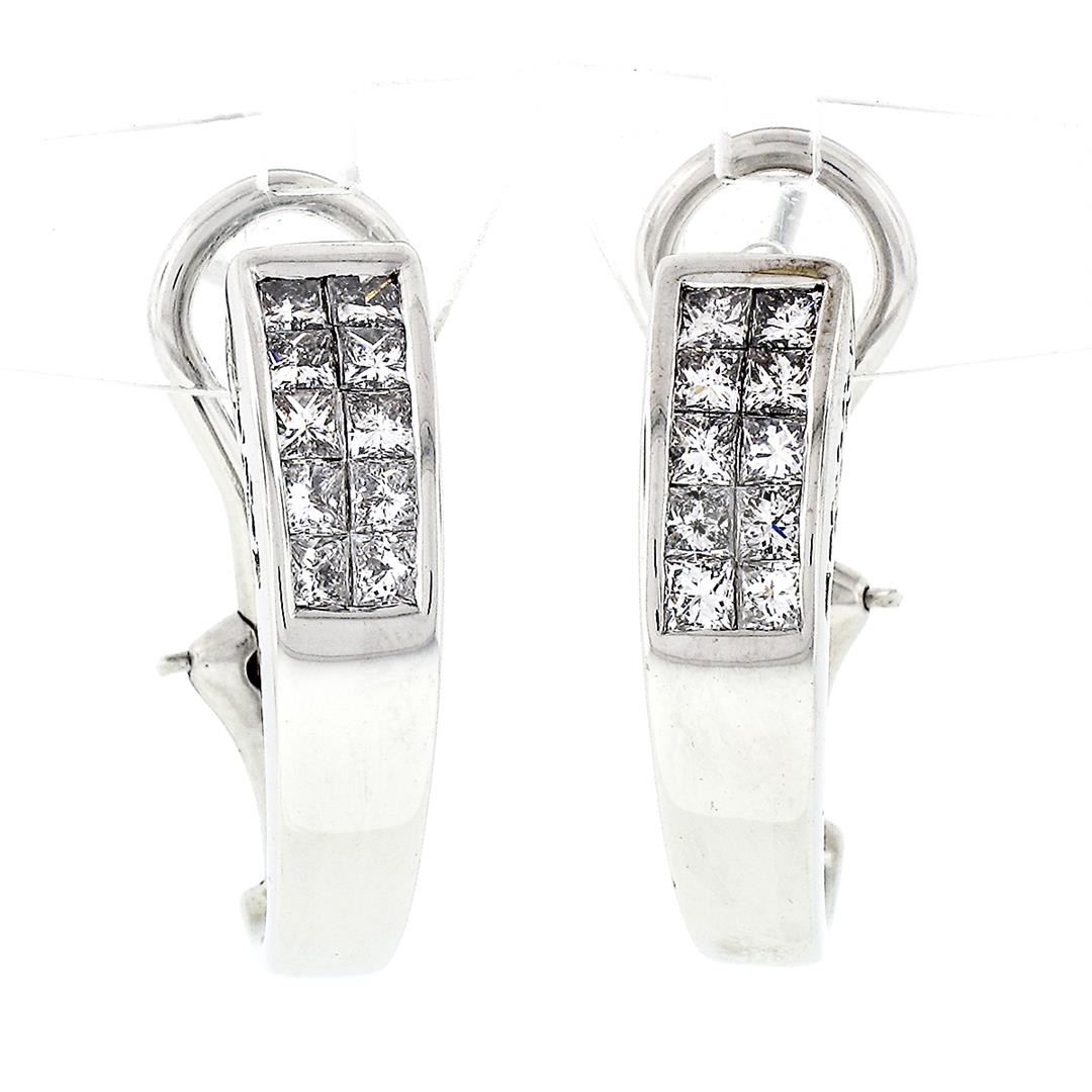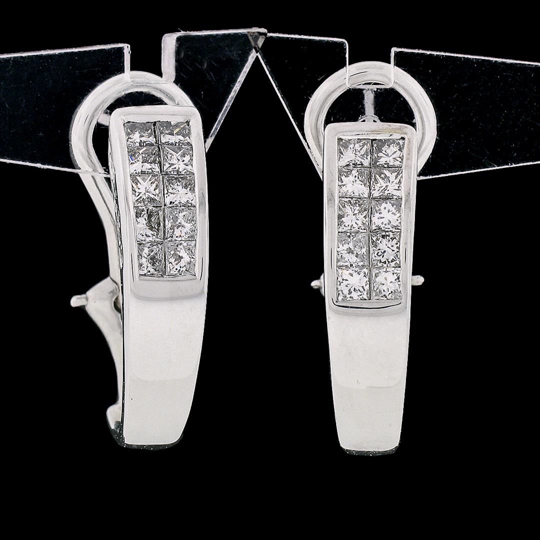 A pair of solid 18k white gold cuff earrings, with 20 square princess cut natural diamonds (G/H - VS2 ; 1.00ctw). The earrings measure approximately 21.58x5.53mm and weigh a total of 7.34 grams.