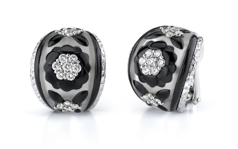 18k White Gold 1.14CTW Diamond and Onyx and Crystal Earrings, (SI1 /H-I)