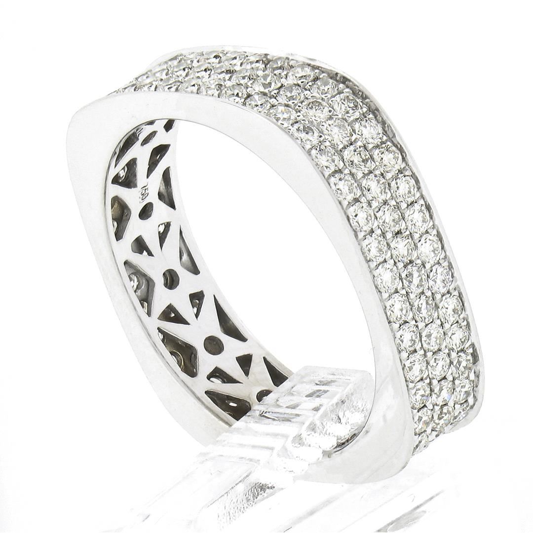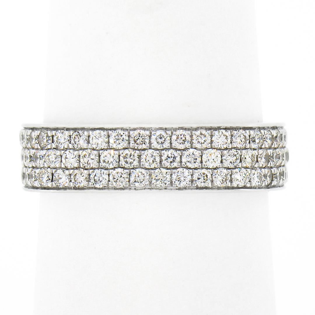 A solid 18k white gold eternity band ring, with 120 round brilliant cut natural diamonds (G/H - VS1/SI1 ; 1.20ctw). The ring is size 6.5, weighs a total of 4.50 grams, and measures 5.1mm wide.