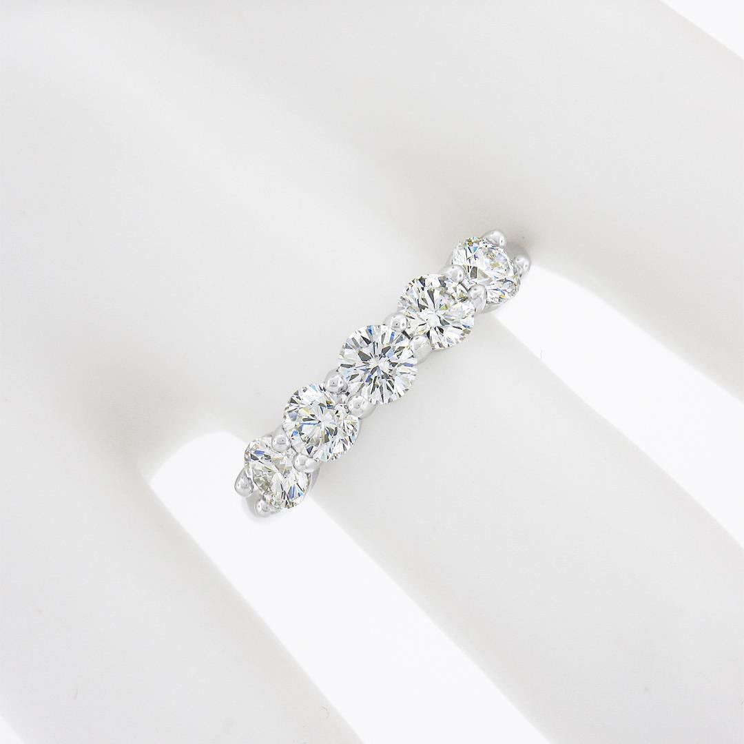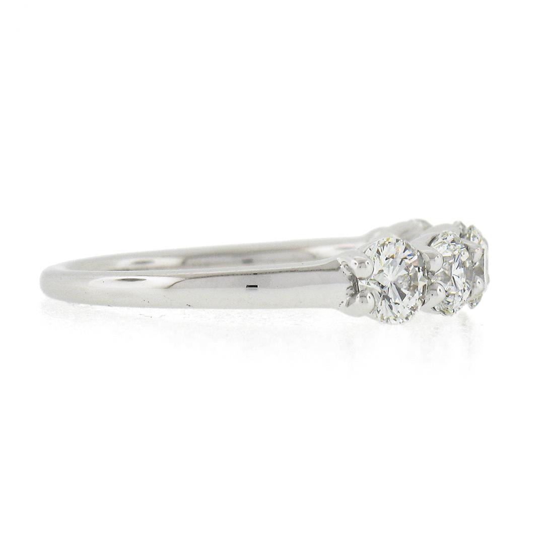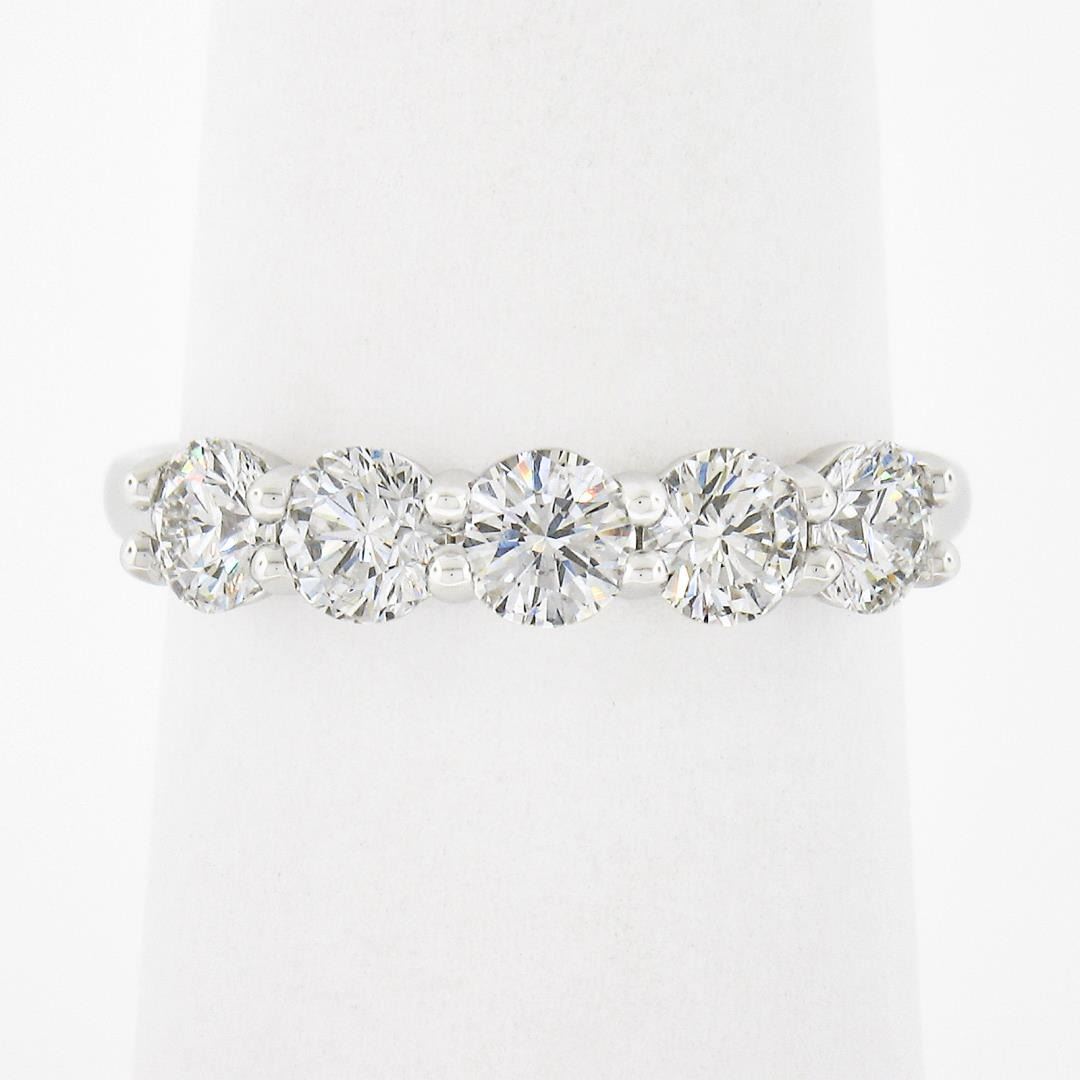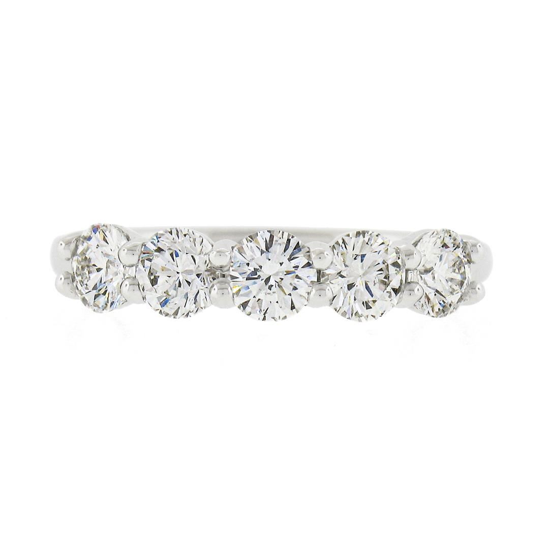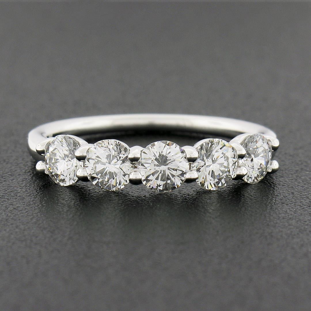 A new solid 18k white gold band ring, with 5 round idael cut natrual diamonds (F/G - VS1/VS2 ; 1.24ctw). The ring is size 6.5, weighs a total of 2.77 grams, and measures 4.1mm wide.