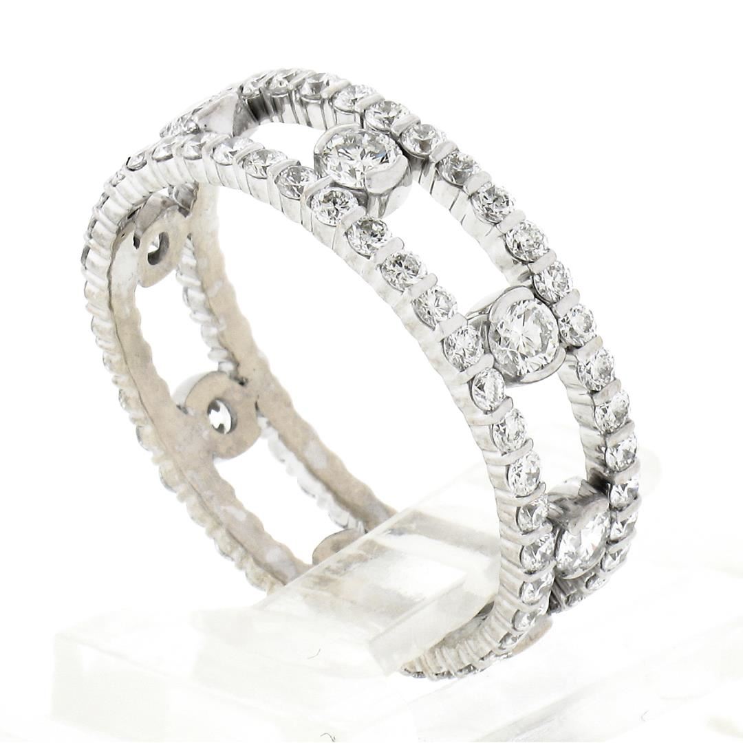 A solid 18k white gold eternity band ring. with 88 round brilliant cut natrual diamonds (F/G - VS1/VS2 ; 1.44ctw). The ring is size 6.5, weighs a total of 2.75 grams, and measures 5.5mm wide.