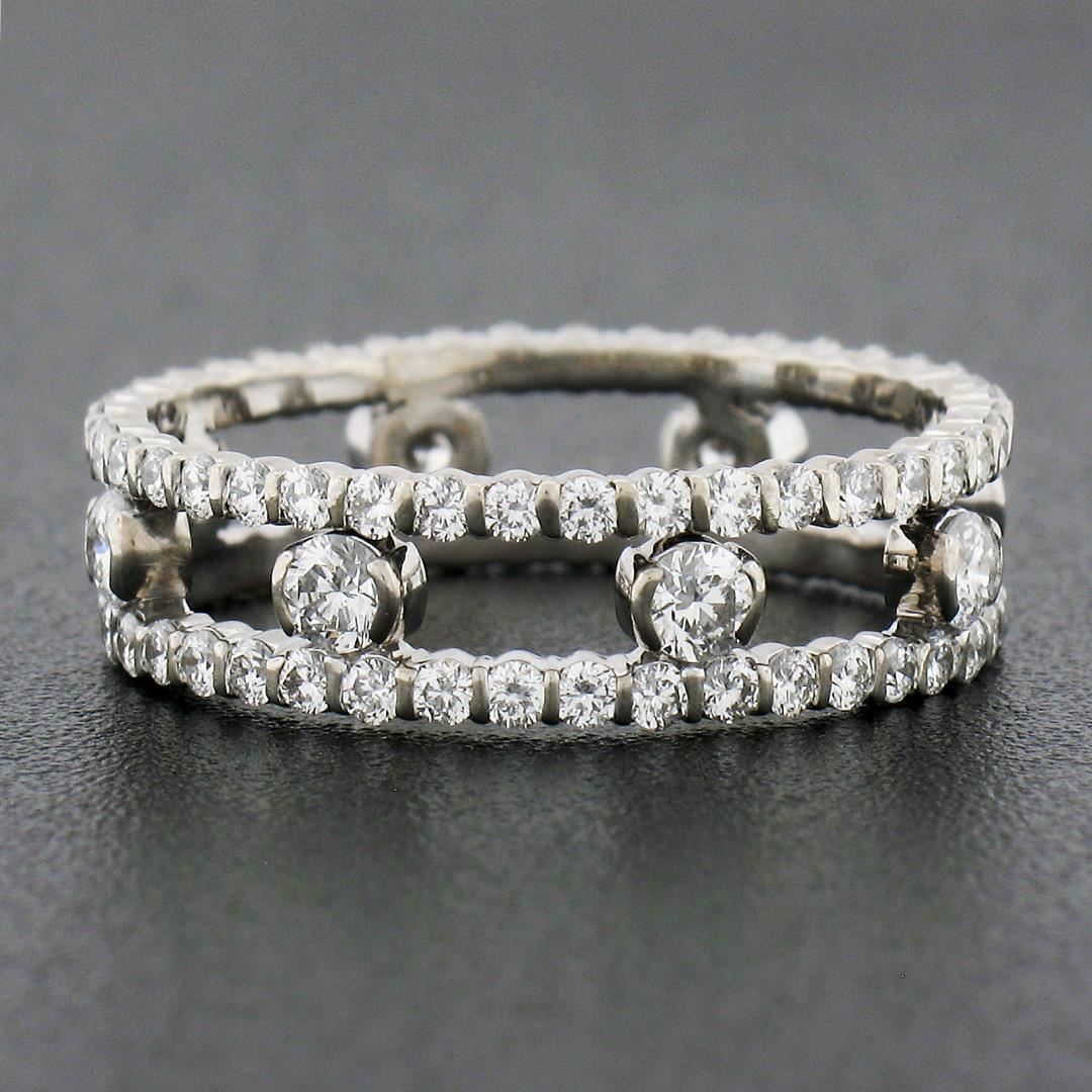 A solid 18k white gold eternity band ring. with 88 round brilliant cut natrual diamonds (F/G - VS1/VS2 ; 1.44ctw). The ring is size 6.5, weighs a total of 2.75 grams, and measures 5.5mm wide.