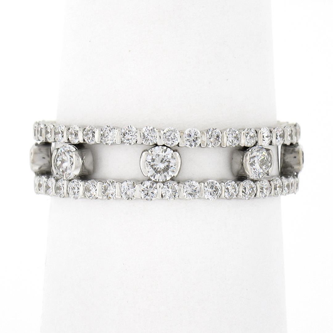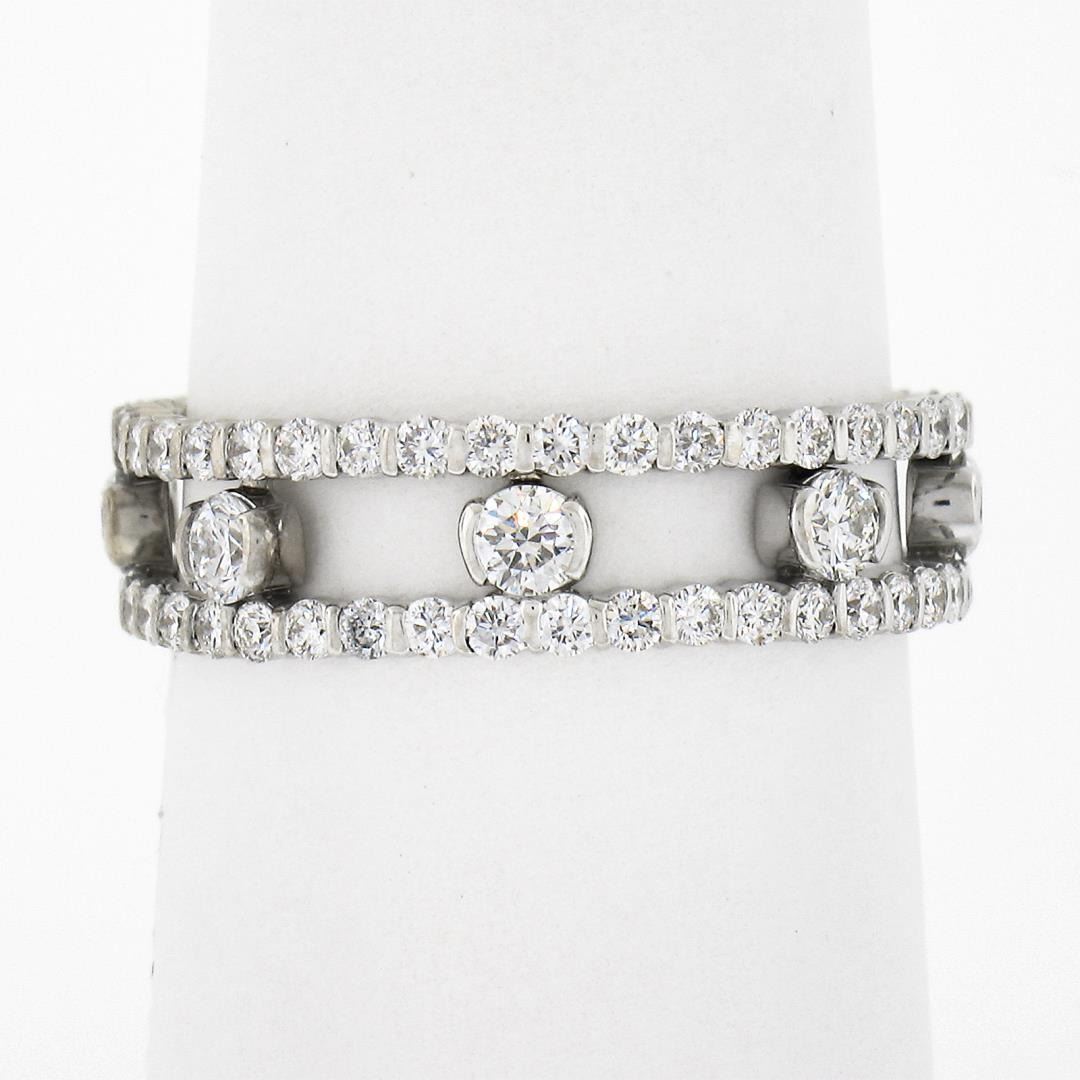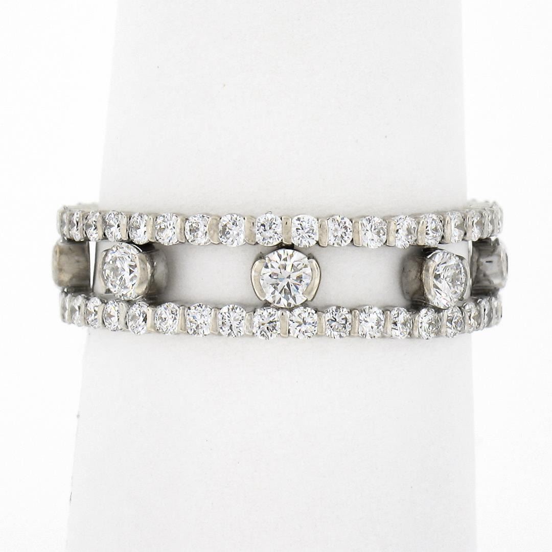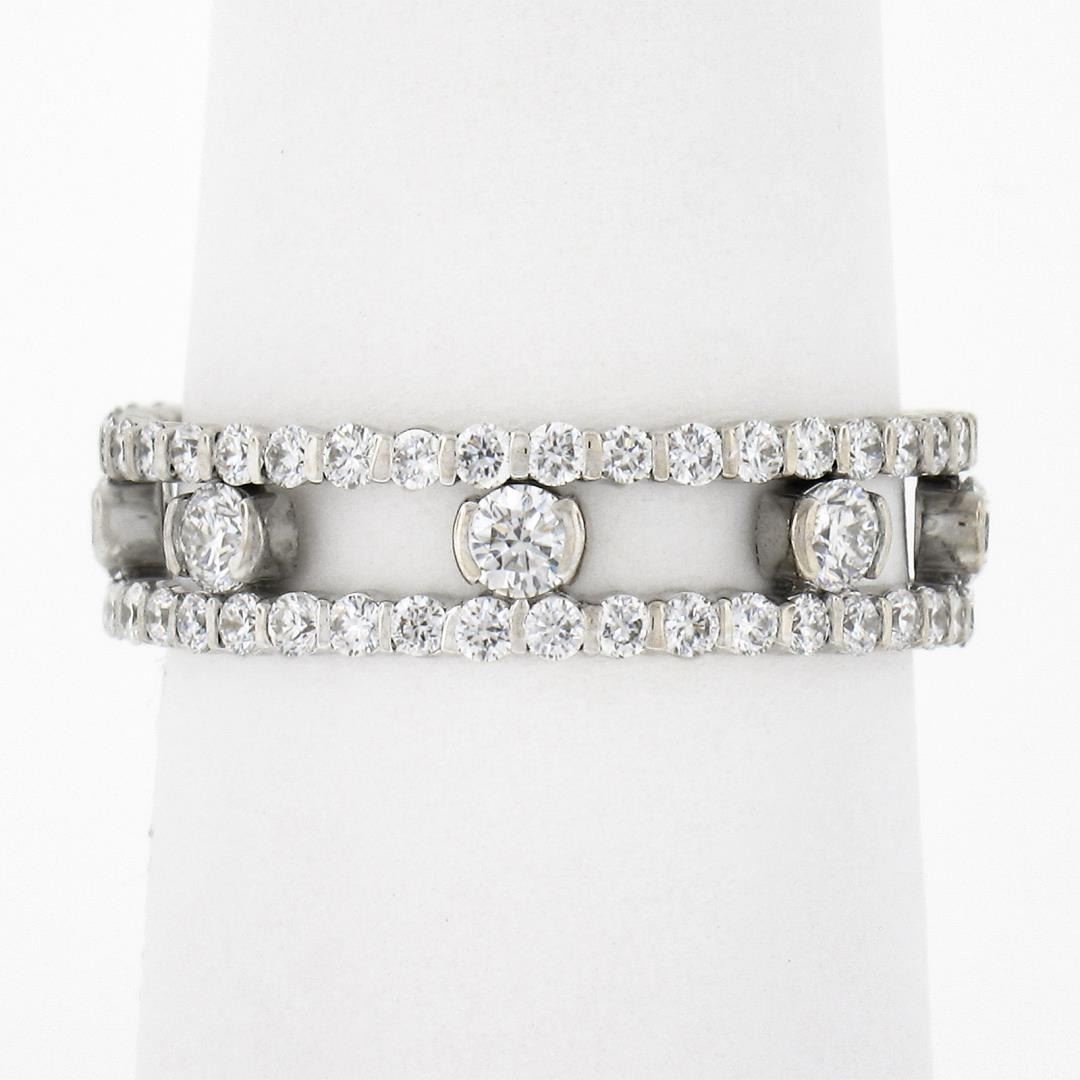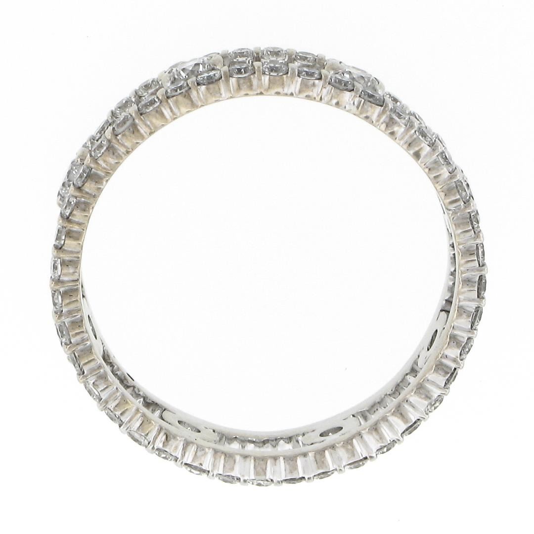 A solid 18k white gold eternity band ring. with 88 round brilliant cut natrual diamonds (F/G - VS1/VS2 ; 1.44ctw). The ring is size 6.5, weighs a total of 2.75 grams, and measures 5.5mm wide.