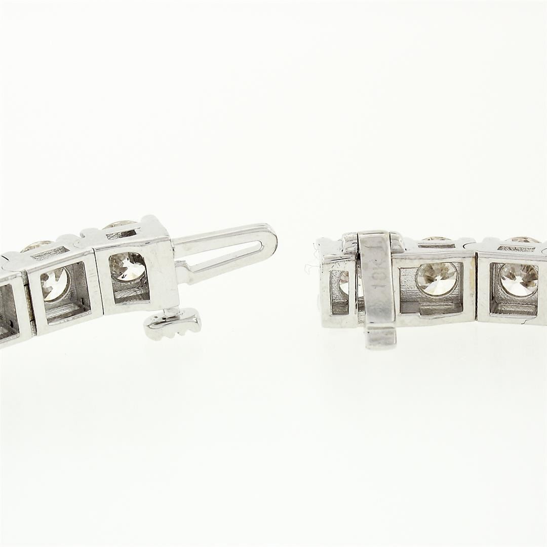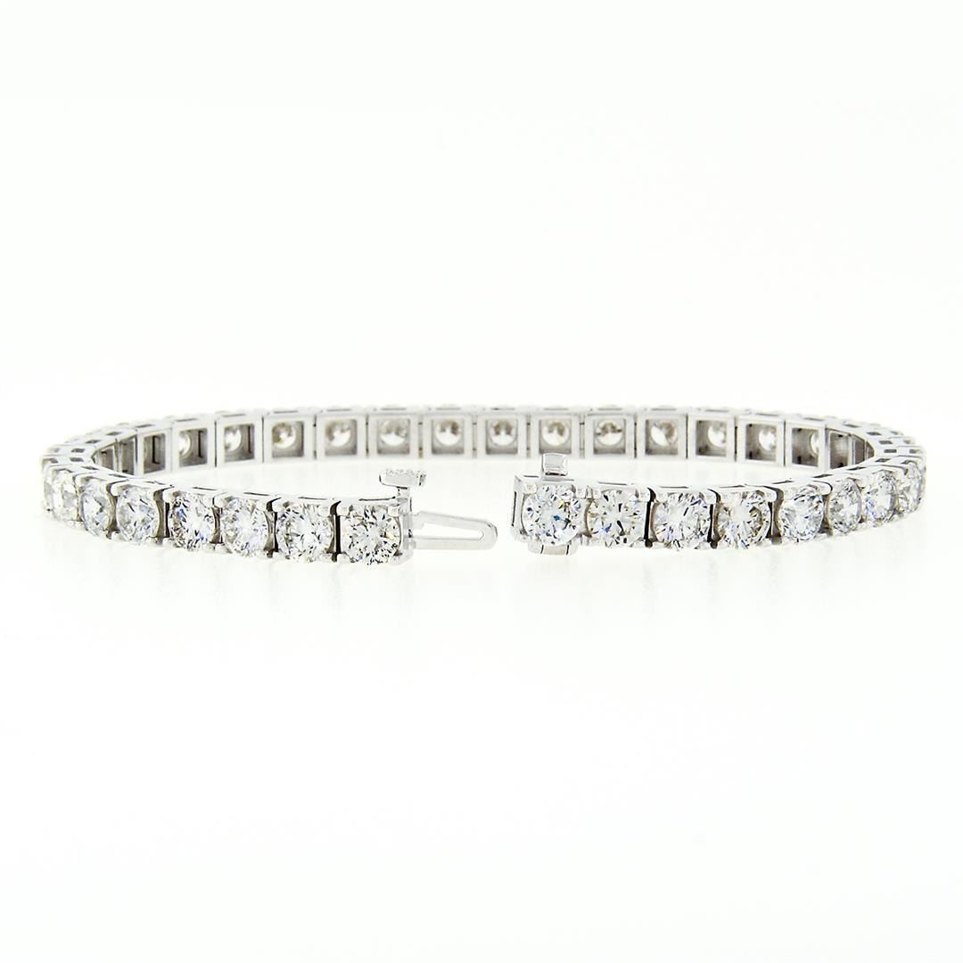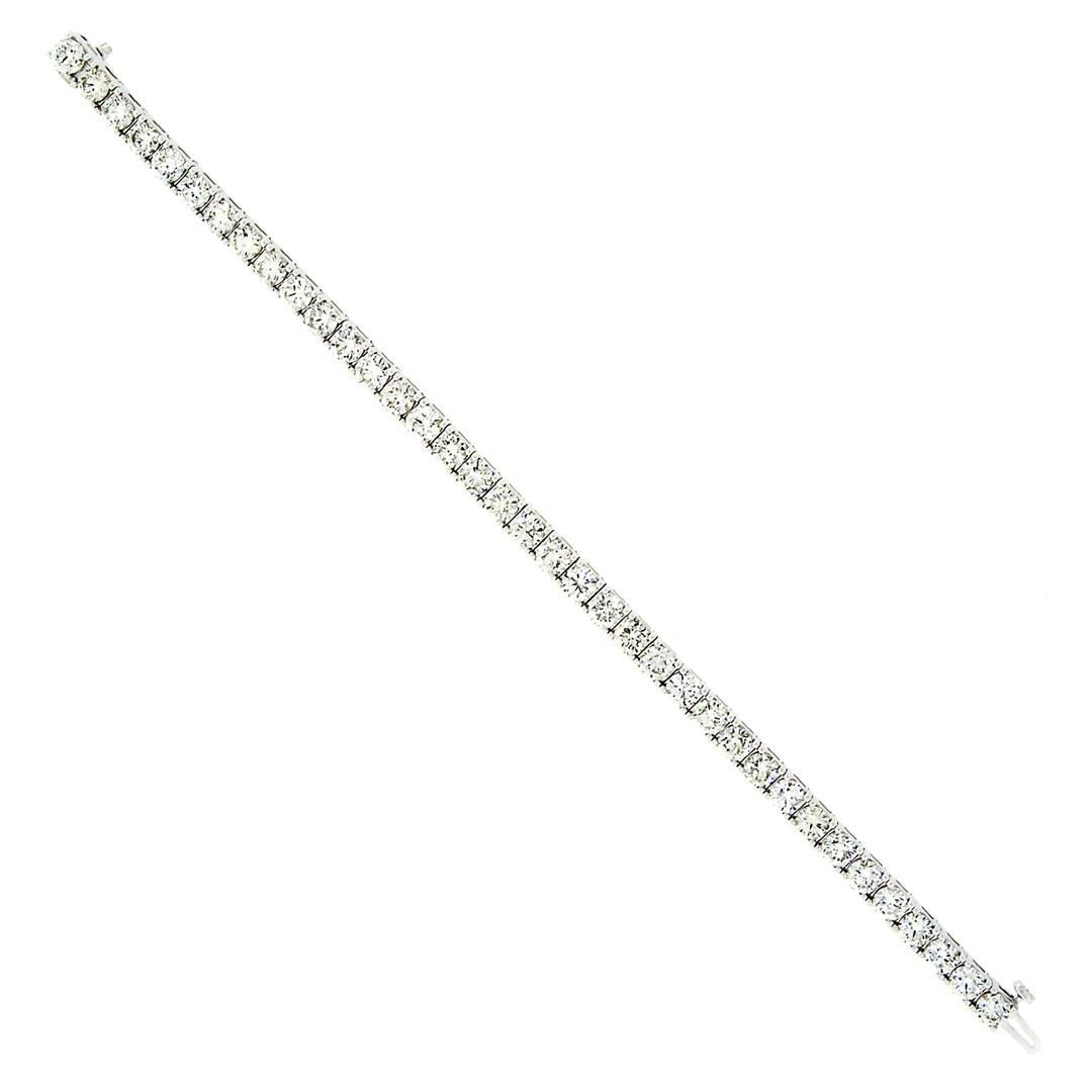 A new solid 18k white gold tennis bracelet, with 37 round brilliant cut natural diamonds (H/I- SI1/SI2; 12.21ctw). It weighs a total of 23.50 grams, measures 4.6mm wide, and measures 7 inches in length.