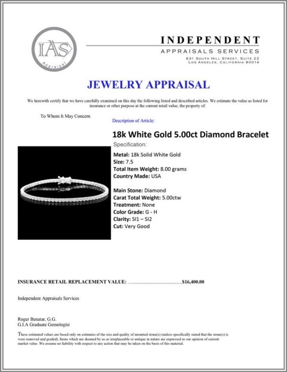 Regarding Appraised Jewelry and Loose Stones - Auctionfarm sends them out to a third party for Retail Replacement Value Appraisals, which are the most common. These types of evaluations are written for insurance needs. This would be the cost to replace the jewelry with an item of equal quality and kind, considered to be the current market price or the replacement value. This type of appraisal is done to protect you in the event of damage or loss of a valuable item. Our appraisals are conducted by independent 3rd Party appraisal firms that utilizes Certified GIA Gemologist. Appraisals should be used for verification of gemstone and/or metal weight, size, and grade only, not actual value. Appraisal value should be considered for insurance purposes only, not actual value, as price varies greatly from retail locations thru out the world. Items should not be purchased with the expectation to resell for appraisal price, or for profit.